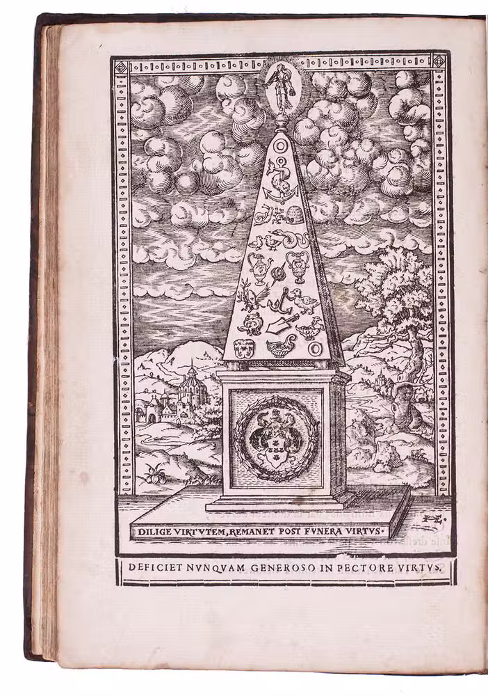 Antwerp, Gillis van den Rade, 1579. With 1 engraved plate (portrait of the author), 17 full-page engravings (ca. 16 x 11.5 cm.) by Dirk Volkertsz. Coornhert after designs of the monogrammist CVSK and a full-page woodcut of an obelisk at the end, signed with the monogram "HE".
