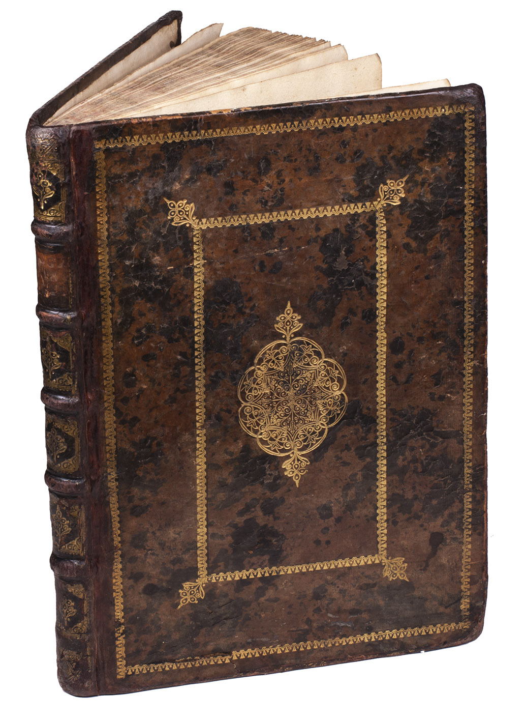 Antwerp, Gillis van den Rade, 1581. With full-page woodcut portrait of the author, and a full-page woodcut obelisk at the end. 3 works in 1 volume. Folio. All 3 works with text in Dutch and French. Early 18th-century gold-tooled mottled calf. [14], 87, [1]; [8], 33, [4]; [40] pp. plus 1 plate.