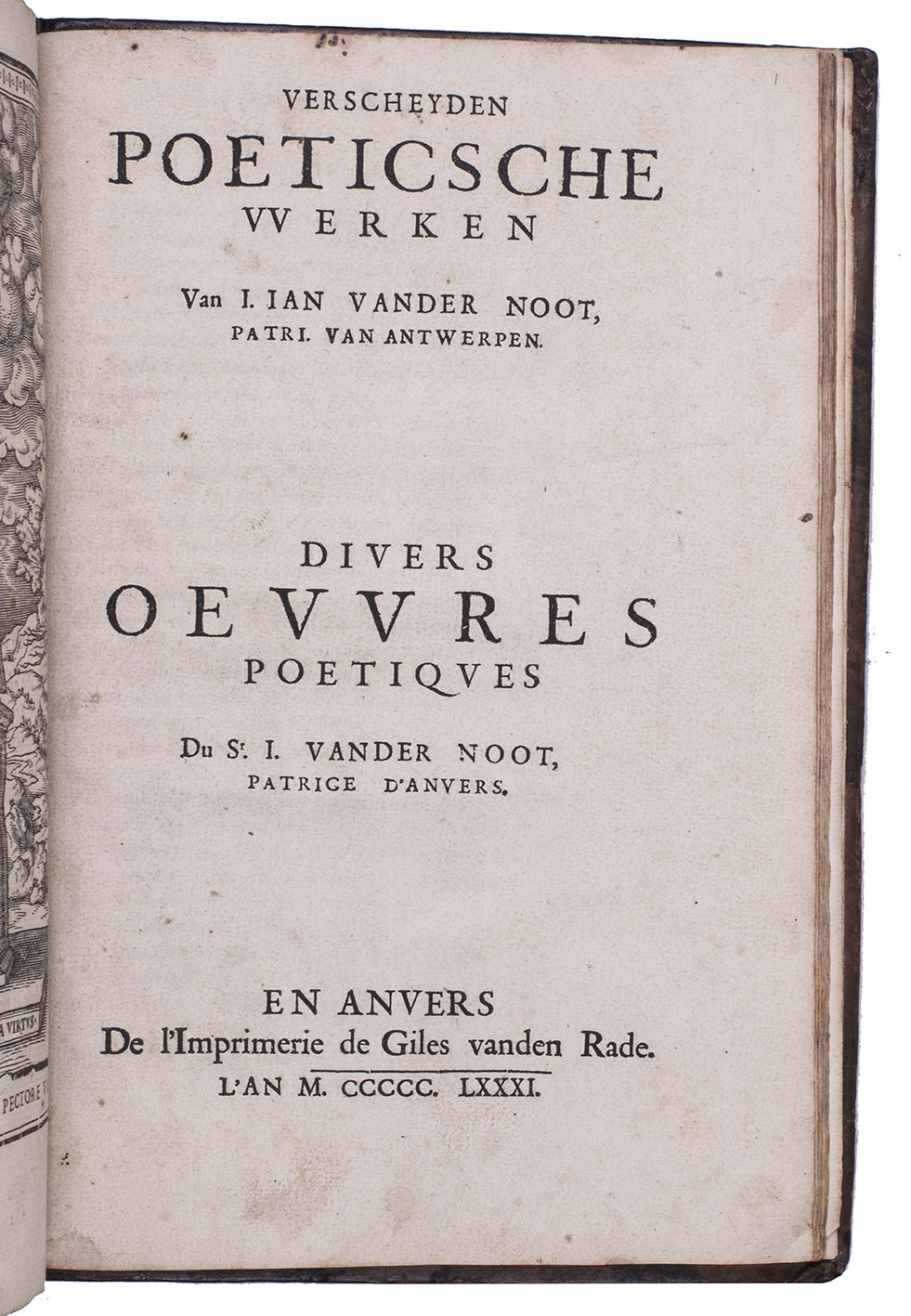 (3) NOOT, Jan van der. Verscheyden poeticsche werken. ... Divers oeuvres poetiques.