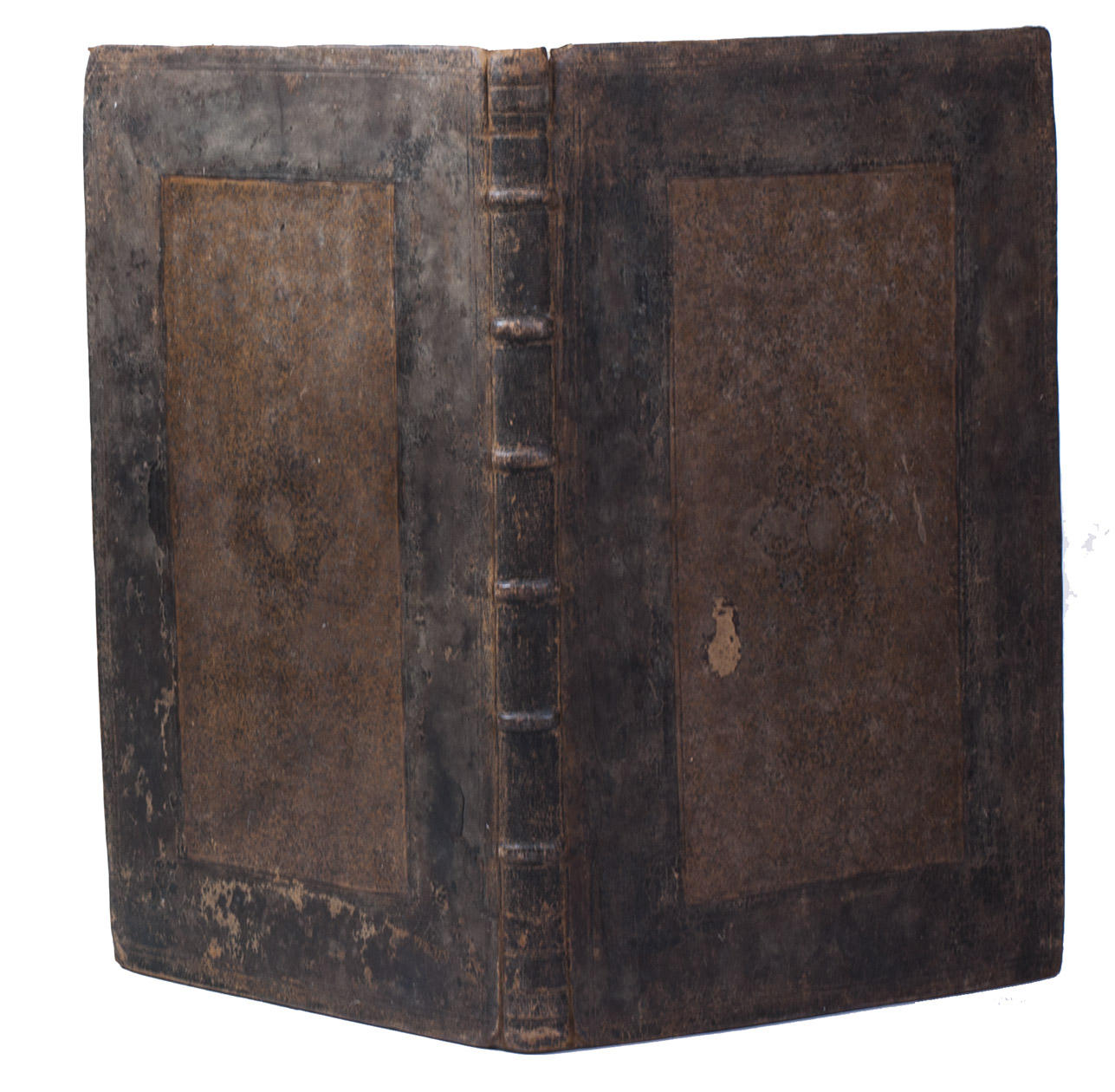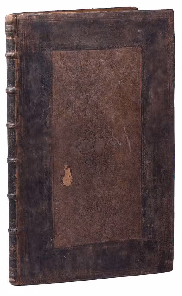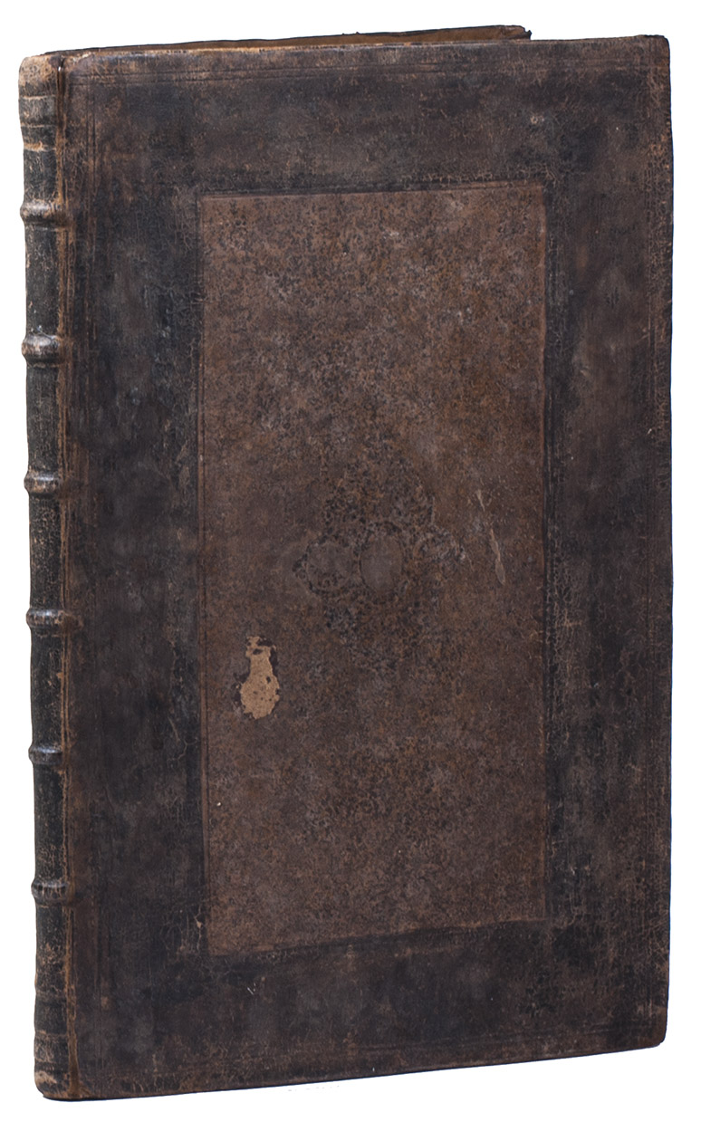 The bifolium Chefs [2] is quired in Chefs [1] to make a quire of 4 as intended, but three other pairs of bifolia have been inappropriately quired: Arnesto in Inkomste, Farneze in Sterckheyt and Euterpe in Langhart. With a small bookplate (ca. 1860/90?) on the front pastedown: "Bibliothèque V[ict]or Quénescourt". With a professionally restored tear in the title page, and a small stain in 1 leaf, but otherwise internally in very good condition. The binding is rubbed, and the chemicals that the binder used to blacken the spine and outer field of the boards have caused superficial damage, but the binding remains structurally sound and the tooling within the central fields remains clear. Belg. typ. 4631; Iberian books 19054-19062; Palau 351519; Peeters-Fontainas 842; Pettegree, French vernacular books, 50378-50384; STCN 385907680 (1 copy with 17 bifolia (1590), mistakenly(?) described as 8vo); STCV 12925589, 12925593, 12925600 (3 copies with 3 (1588), 19 (1592) & 4 (1594) bifolia); USTC 79811, 79816, 80797-80799, 80880, 83007, 349442-349444, 349930, 350699, 440595, 443357 (several of the "24" copies listed are multiple entries for the same copies, 3-20 or 21 bifolia, in spite of erroneous records of "182" leaves); W. Waterschoot, ed., De "Poeticsche werken" van Jonker Jan van der Noot. I. Analitische bibliografie, PW 1588-1595 on pp. 64-170 (21 copies with 2-49 bifolia); WorldCat 68782943, 902545995, 1153618208, & possibly others (at least 5 copies); for the author: Vermeylen, Leven en werken van Jonker Jan van der Noot (1899).