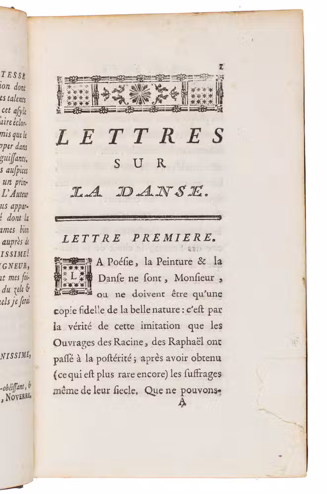 But long before these eclatant successes, he had already exposed his ideas and his plans for the renewal of the art of dancing in the present Lettres sur le dance, et sur les ballets. The first edition is also found with the Lyon address only, and the book was much republished at the time. A facsimile edition was published, with a biography of its author and an interesting introduction by André Levinson, at Paris in 1927.