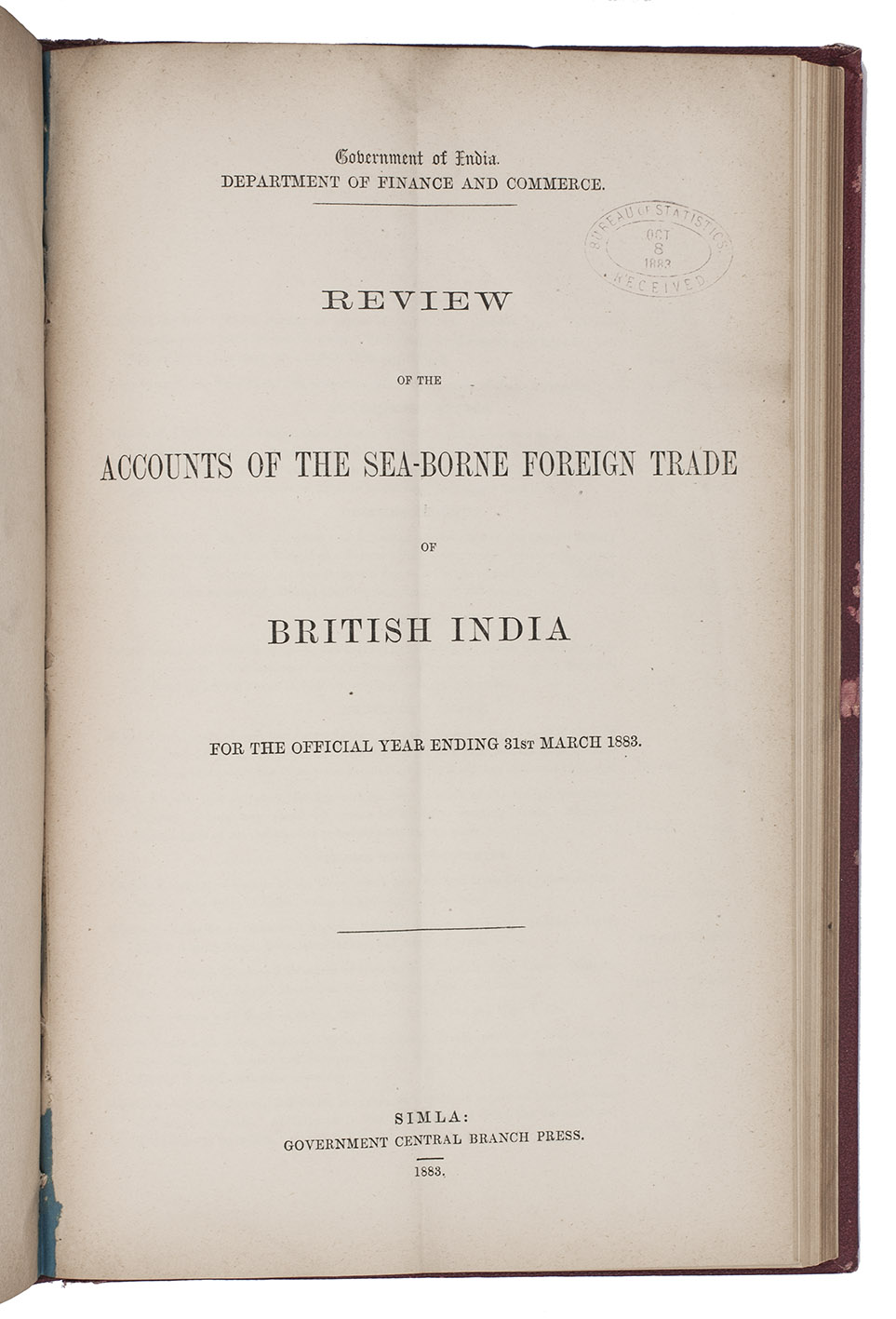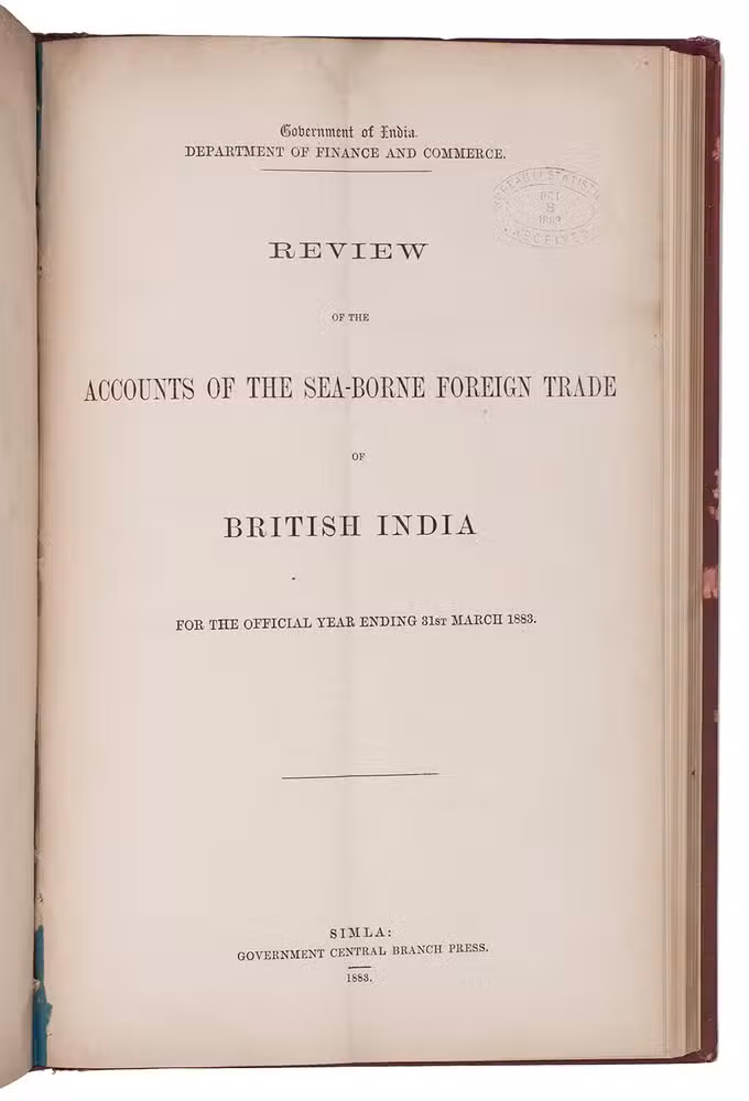 (8) Review of the accounts of the sea-borne foreign trade of British India for the official year ending 31st March 1883.Simla, Government central branch press, 1883.