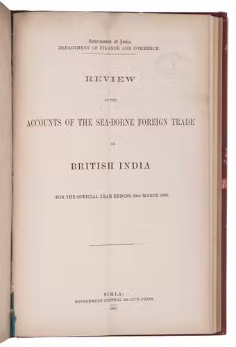 (9) Review of the accounts of the sea-borne foreign trade of British India for the official year ending 31st March 1884.Simla, Government central branch press, 1884.