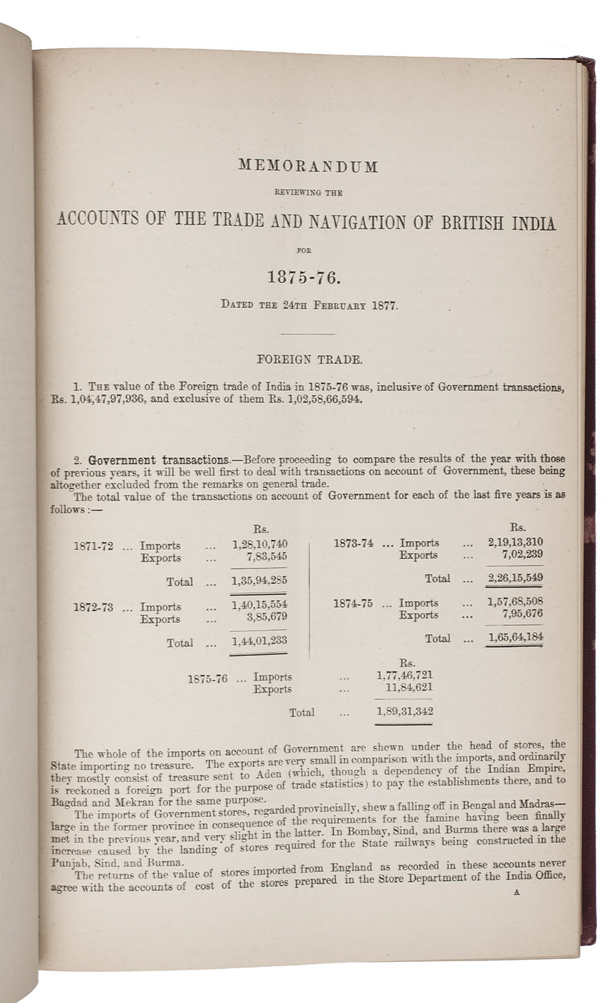 (2) Memorandum reviewing the accounts of the trade and navigation of British India for 1875-76. Dated the 24th February 1877.