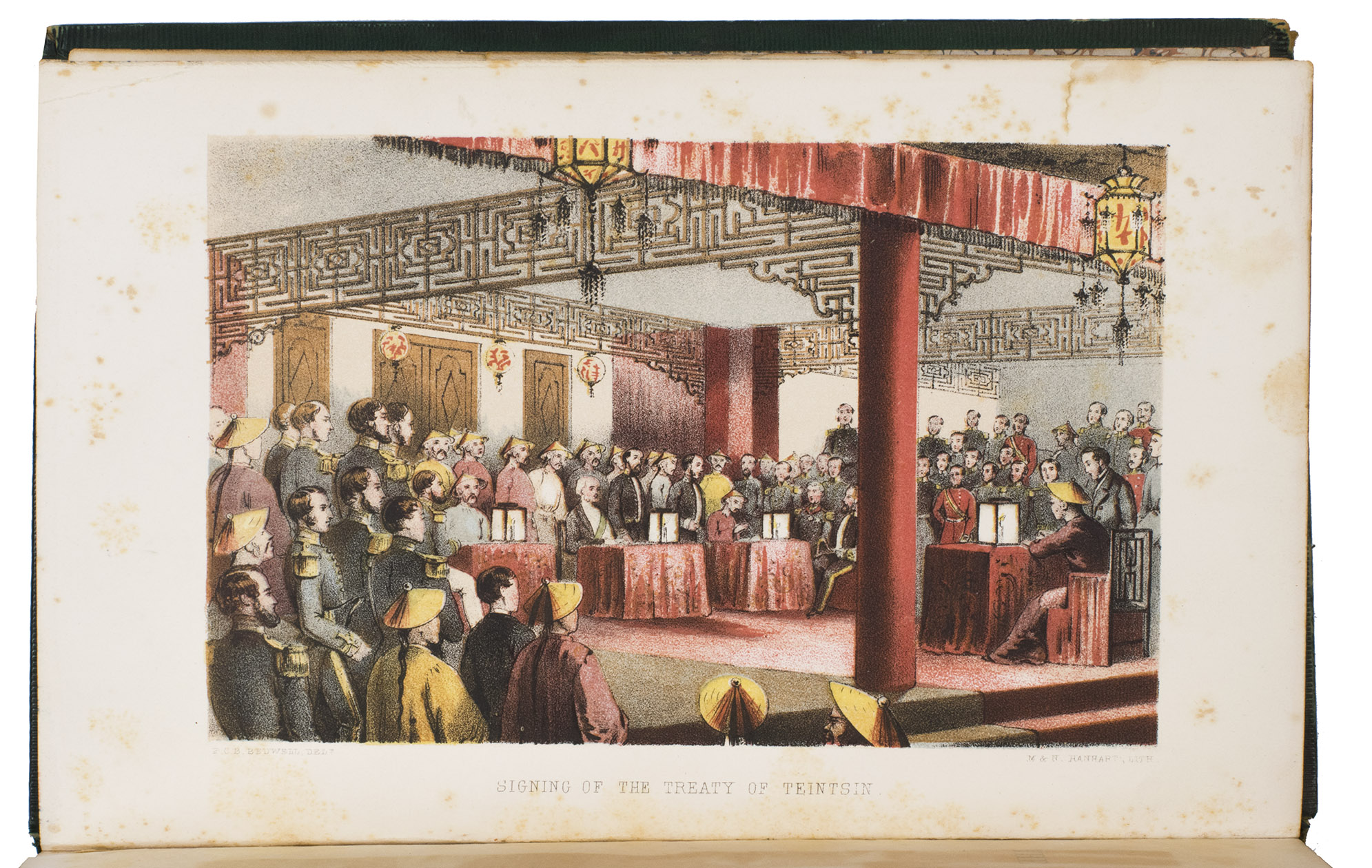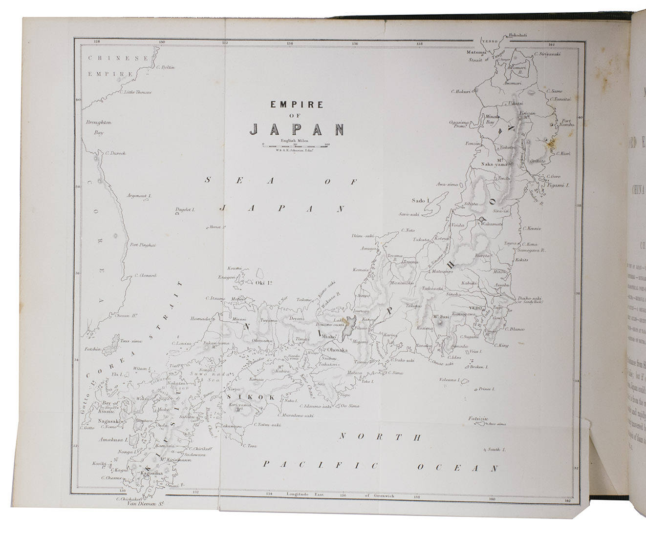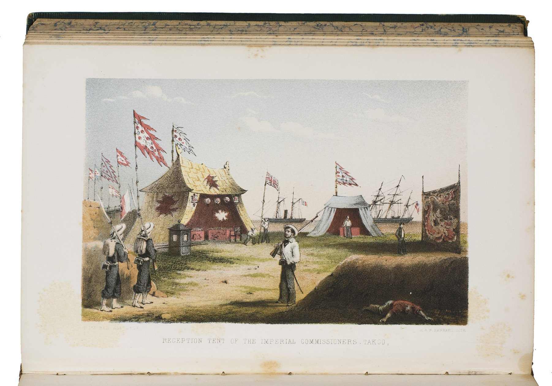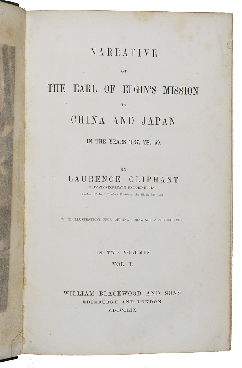 First edition of a highly entertaining combination of travel writing and diplomatic history. It describes the diplomatic missions of the Earl of Elgin to China and Japan in 1857-1859, which ended in various treaties opening the countries to the British. In his capacity as private secretary to Lord Elgin, Oliphant was present at all the major events and published his account of the brazen gunboat diplomacy immediately after his return to Great-Britain. Besides witnessing the bombardment of Canton and the siege of Tientsin, Oliphant also gives vivid accounts of life and events in China and Japan, including his delights in eating with chopsticks.