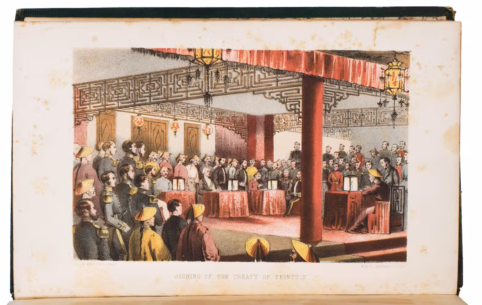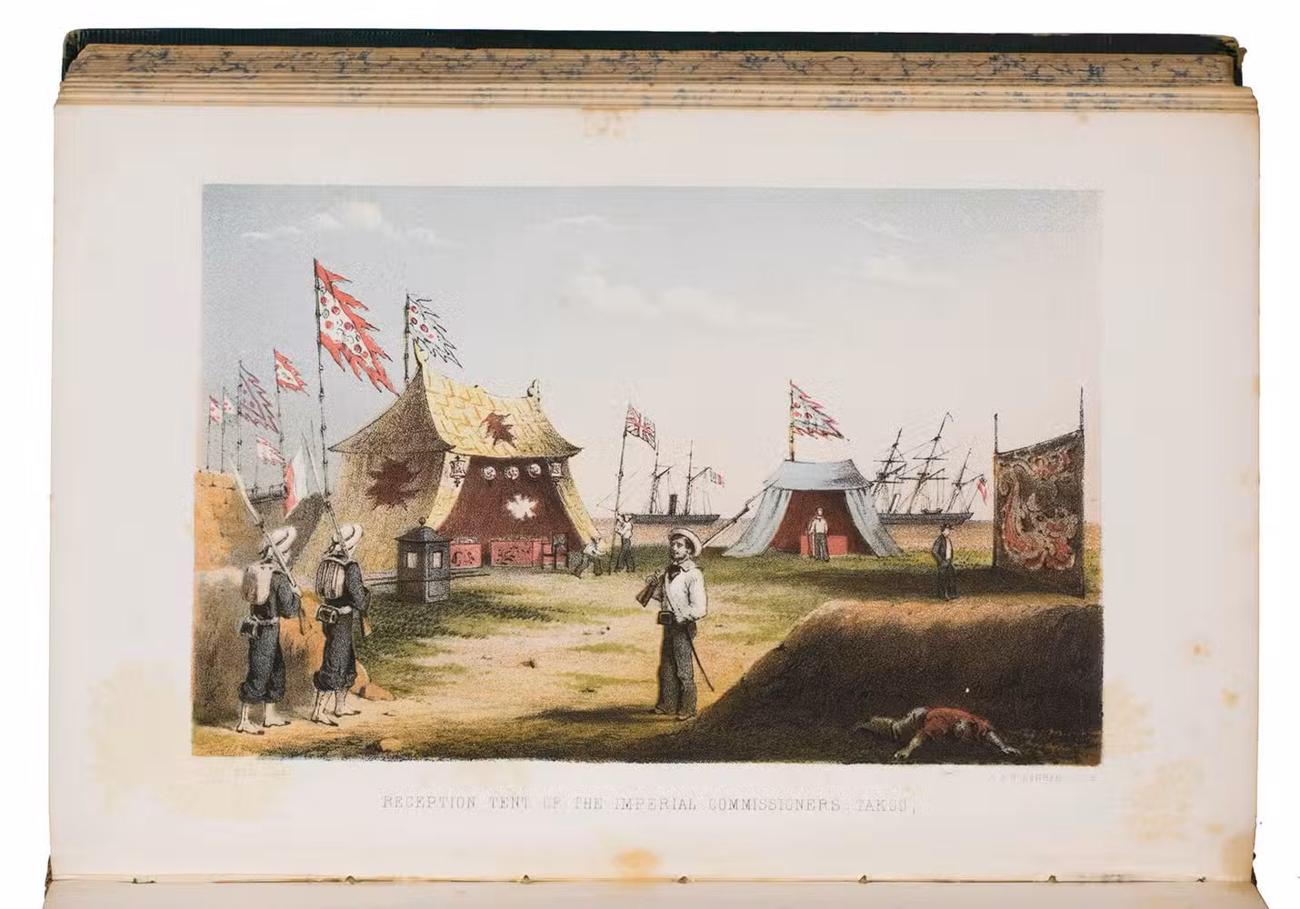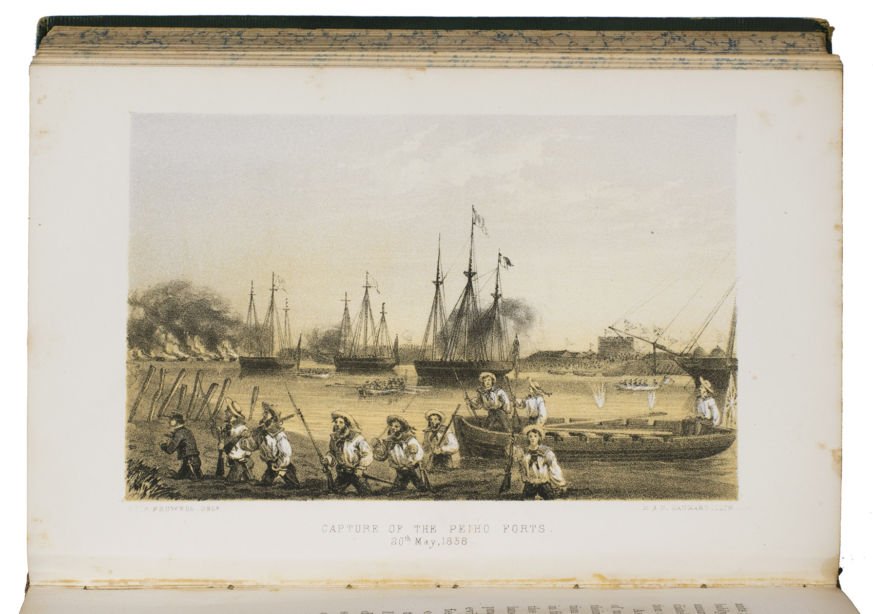 First edition of a highly entertaining combination of travel writing and diplomatic history. It describes the diplomatic missions of the Earl of Elgin to China and Japan in 1857-1859, which ended in various treaties opening the countries to the British. In his capacity as private secretary to Lord Elgin, Oliphant was present at all the major events and published his account of the brazen gunboat diplomacy immediately after his return to Great-Britain. Besides witnessing the bombardment of Canton and the siege of Tientsin, Oliphant also gives vivid accounts of life and events in China and Japan, including his delights in eating with chopsticks.