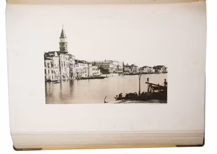 Binding slightly worn, especially around the spine. Flyleaves slightly frayed, some foxing on all the plates, but otherwise a beautiful 19th-century collection of collotype views of Venice.