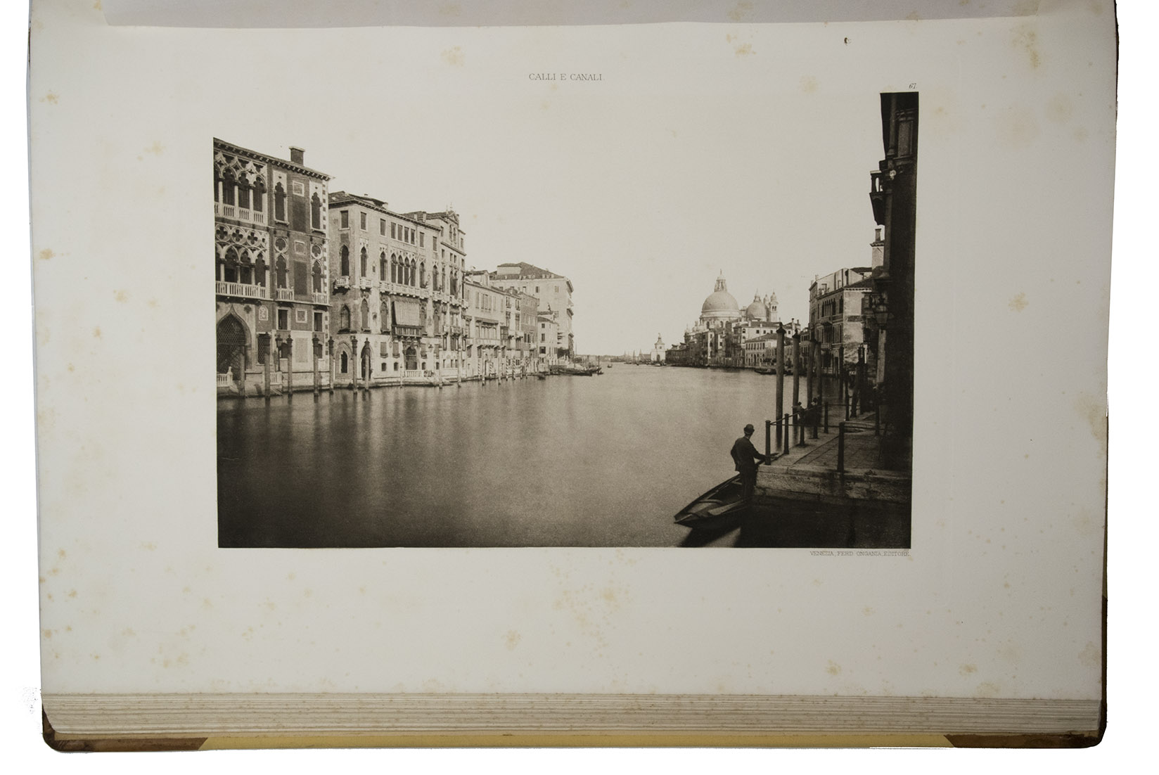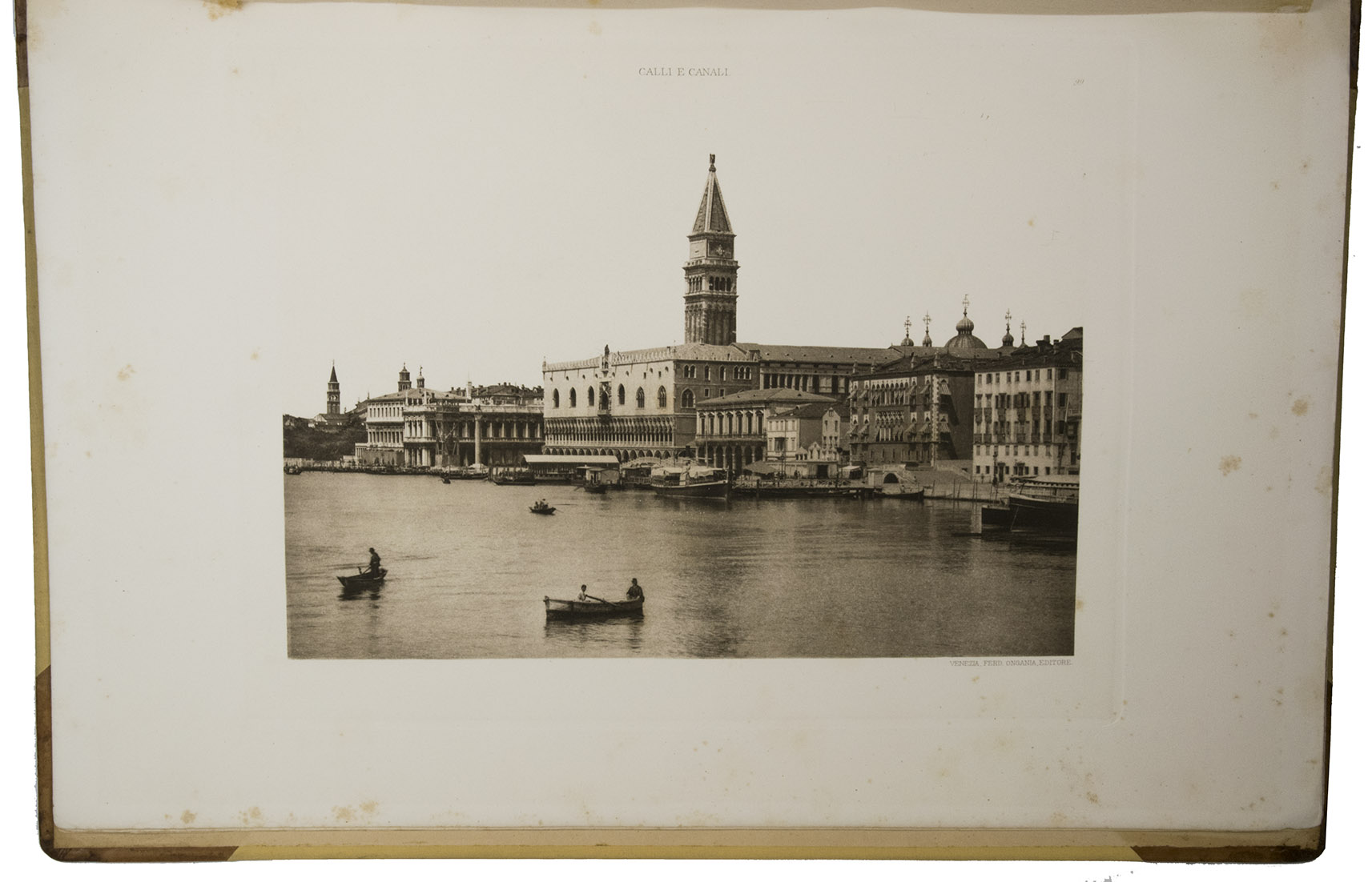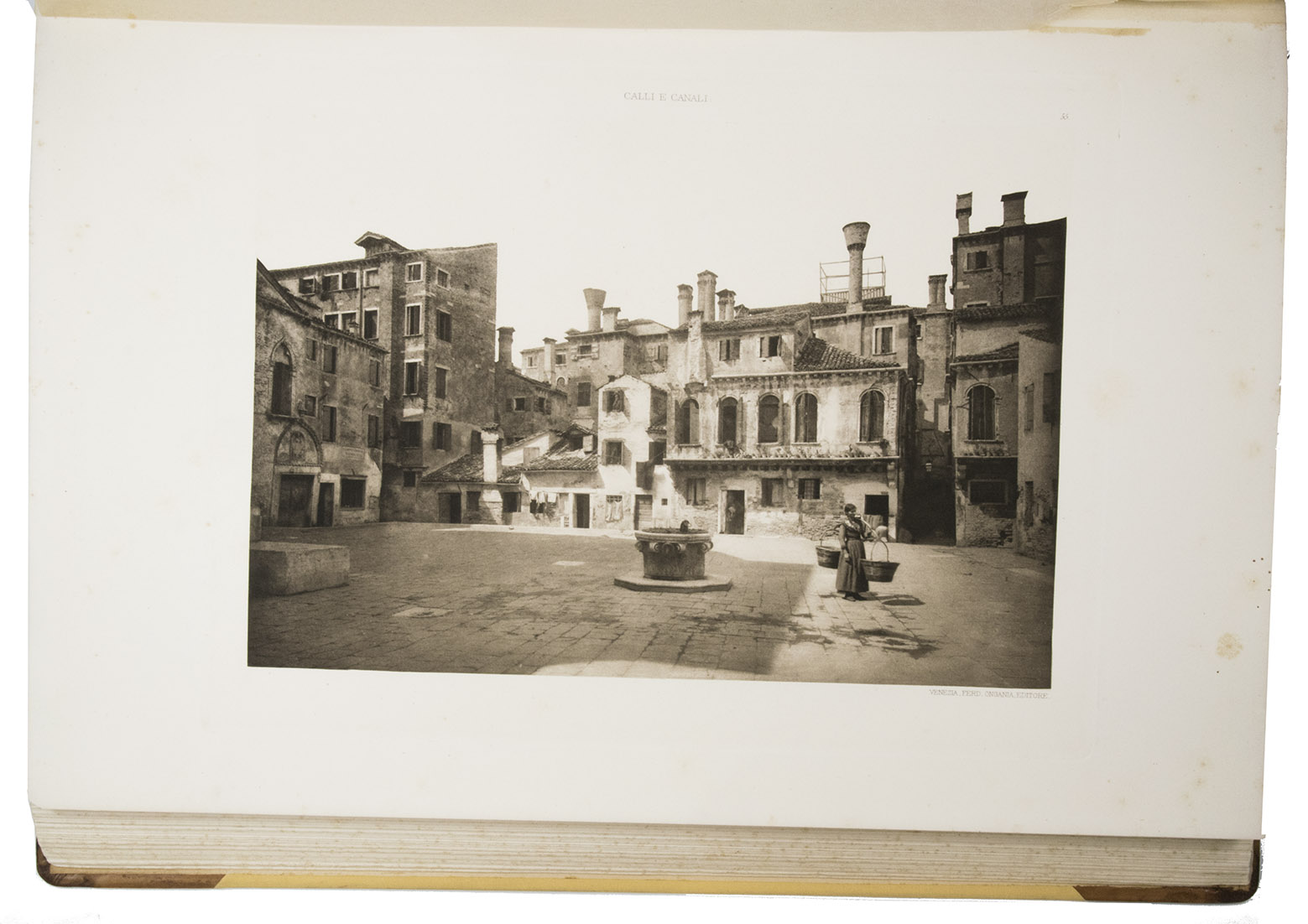 The present first volume of Ongania's collection was already issued in 1891 under the title Calli et canali in Venezia, also containing 100 plates, particularly of the main island of Venice. Several issues of this work followed, including the present one. Its great success also led to a second part, issued with the same title Calli e canali e isole della laguna with 100 new collotypes of the Venetian minor islands, issued in the same years.