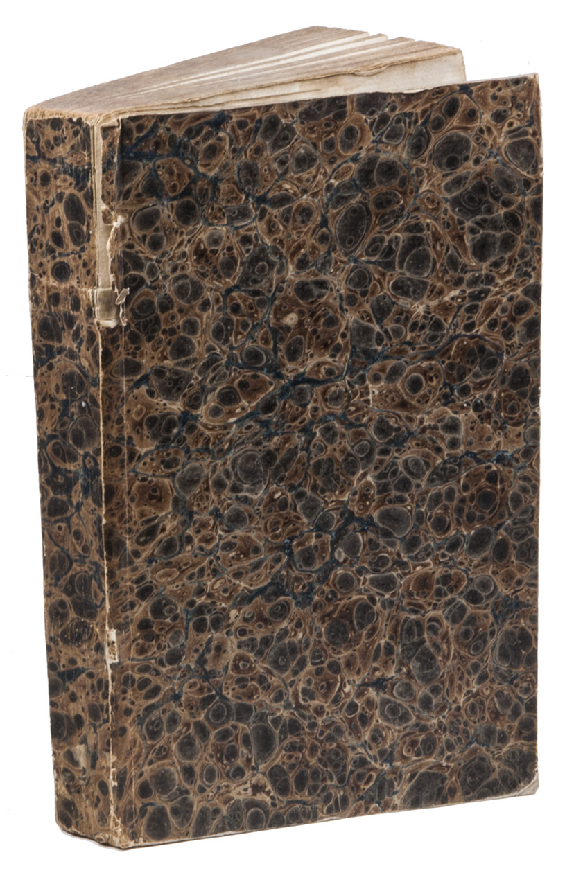 Leiden, Abraham & Jan Honkoop, 1783. 8vo. With a decoration built up from rococo typographic ornaments on the title-page, woodcut headpieces. Contemporary marbled paper over thin boards. [8], 294 pp.