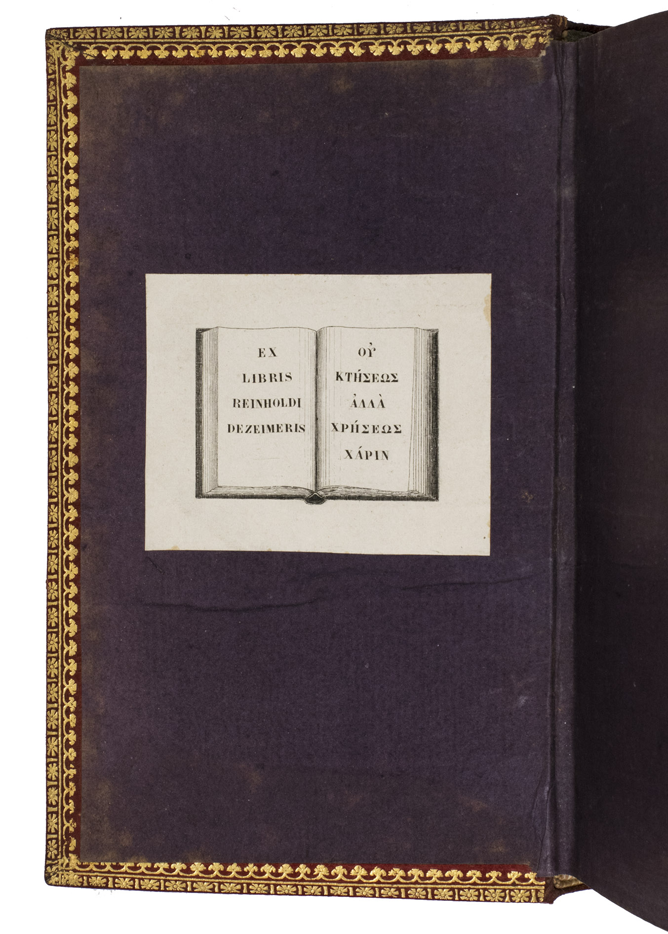 With the ex libris book plate of Reinhold Dezeimer on the front pastedown and a manuscript inscription in brown ink on the verso of the second free flyleaf ("Chardon de la Rochette"). The binding shows very slight signs of wear, foxed and browned throughout. Otherwise in good condition. Adams O-207; Brunet IV 195; Leiden imprints, p. 78; Machiels O-69; STCN 840293046 (12 copies, incl. 1 incomplete); Thiébaud 696-7; Typ. Bat. 3873; USTC 423710.