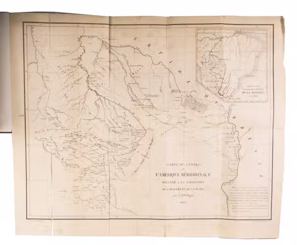 Paris, P. Bertrand; Strasbourg, widow Levrault (printed by Berger-Levrault), 1845. 8vo. With a large folding lithographed map (43 x 52 cm) of the centre of South America. Modern half red morocco. [4], 584 pp.