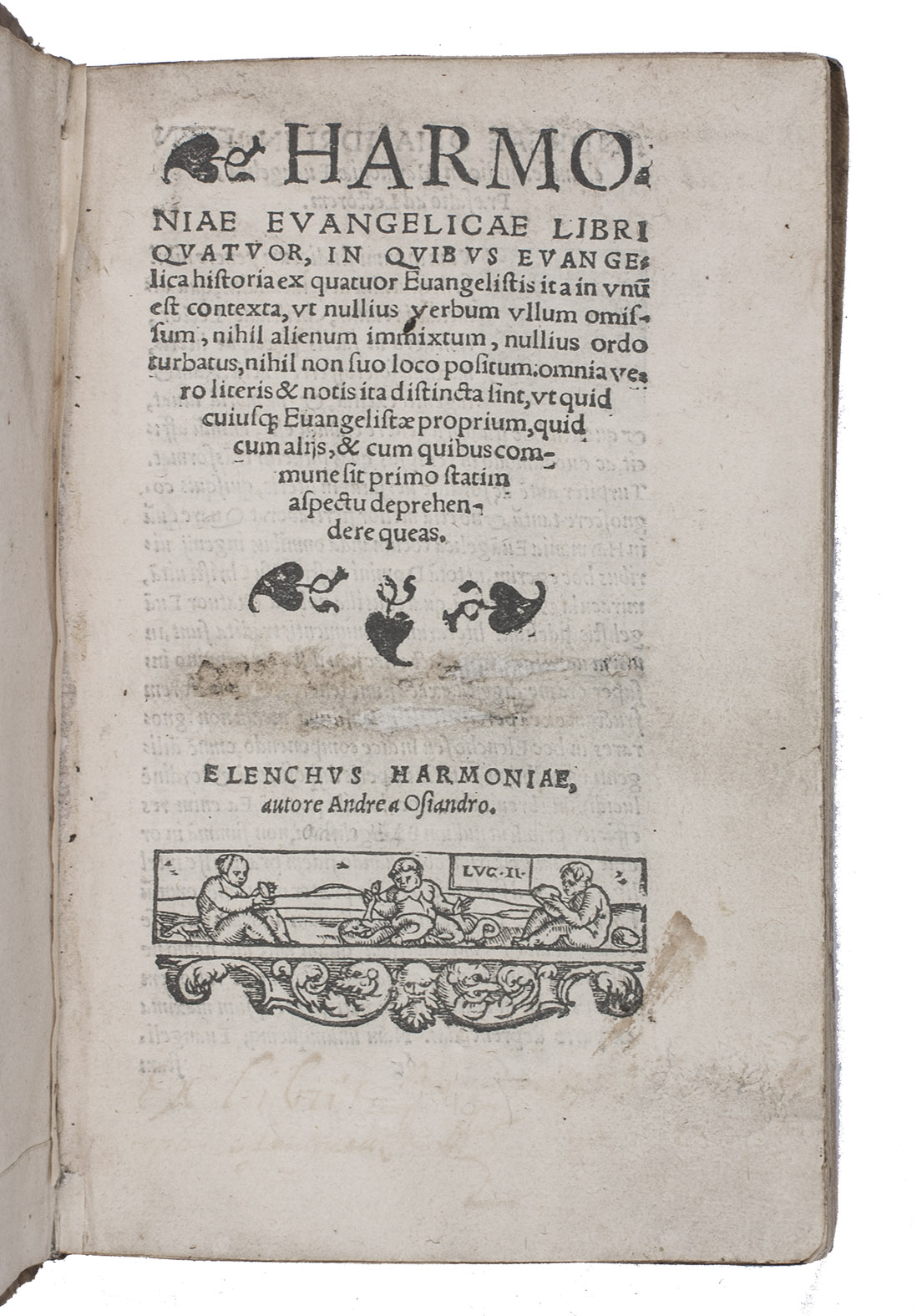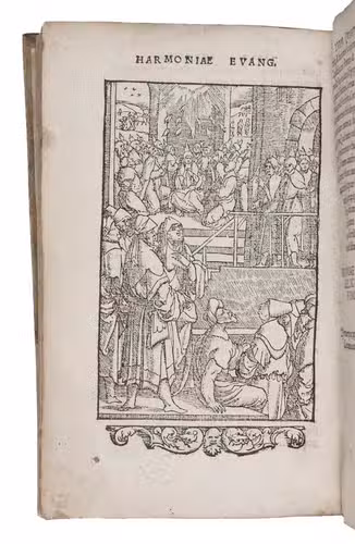 Osiander's present Harmony of the Gospels is his only work that was also published outside Germany. The woodcuts are ascribed to Levinus (Liévin) de Witte (ca. 1503- 1578 or soon after), a painter, designer and perhaps also a woodcutter, working in Antwerp, Brussels and Ghent.