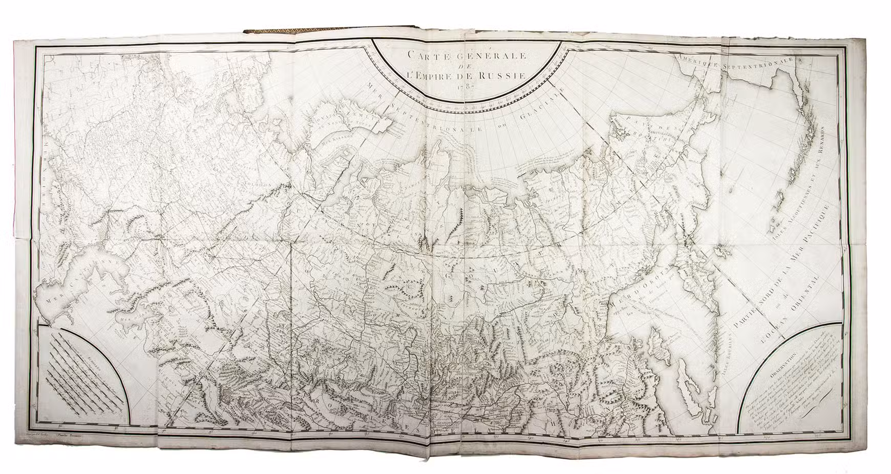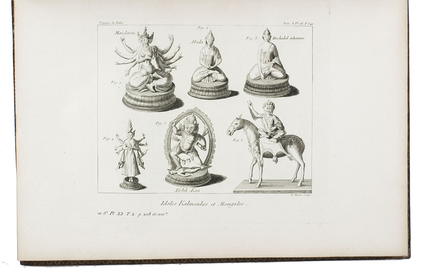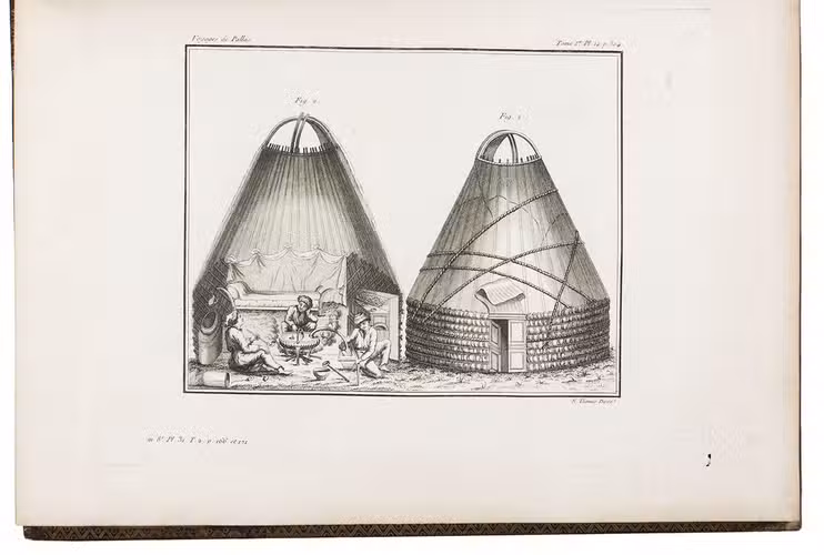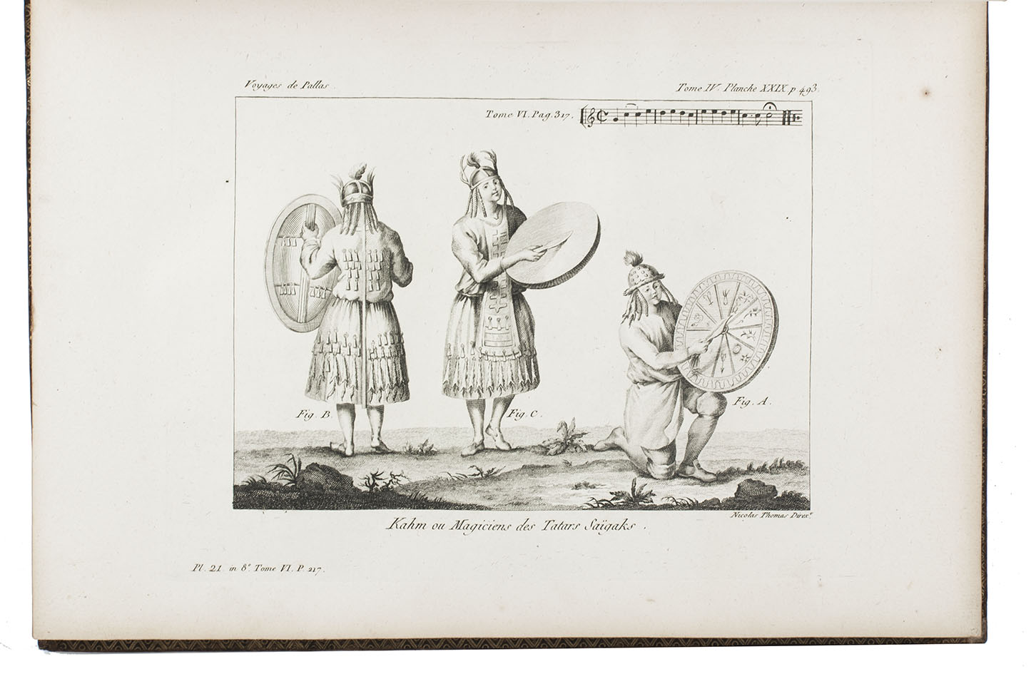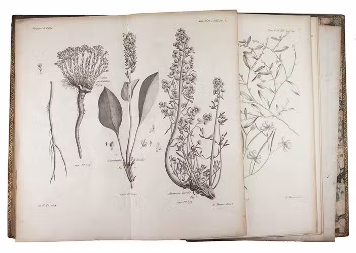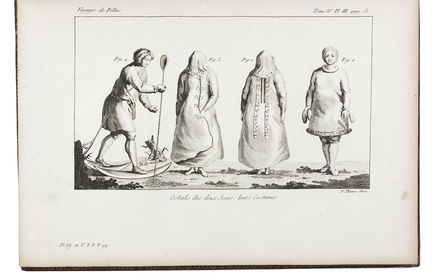 In the years 1768 to 1774 Pallas joined so-called "academic expeditions" which traversed the Russian Empire from west to east. He studied flora and fauna, landscape, geological condition, local population and culture. His findings were published in Reise durch verschiedenen Provinzen des russischen Reichs (3 volumes, St Petersburg 1771-1776). The French translation of the work appeared in five volumes and one atlas-volume, 1788-1793. The present nouvelle édition, revised by Lamarck and Langlès, comprises eight text-volumes and one atlas volume with maps and plates. The large map of Russia (55 x 117 cm) is accompanied by ten others of parts of Russia (three folding and two double-page). The other illustrations show plants (ca. 58), costumes, animals, buildings, inscriptions etc.