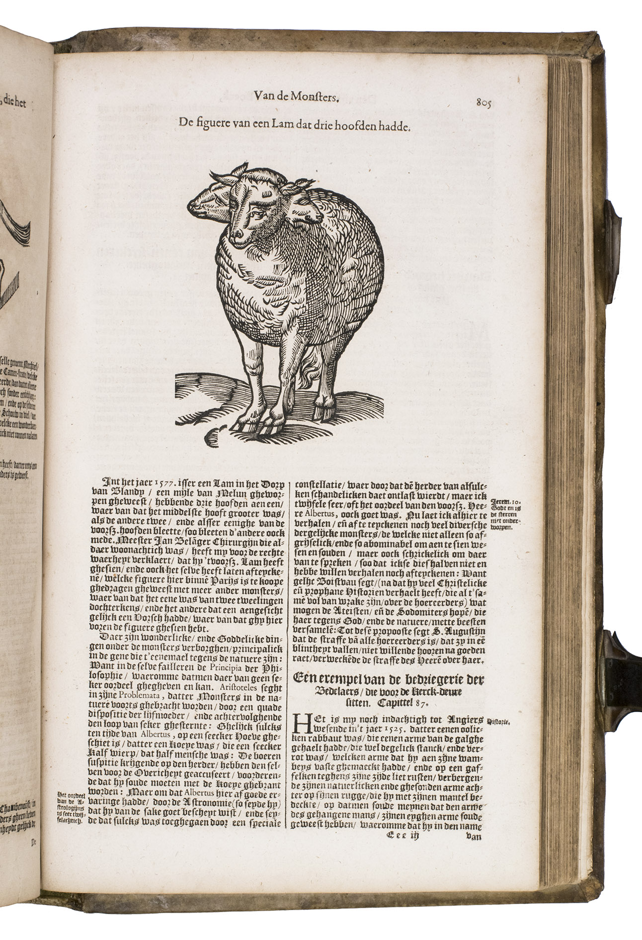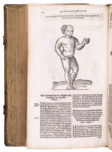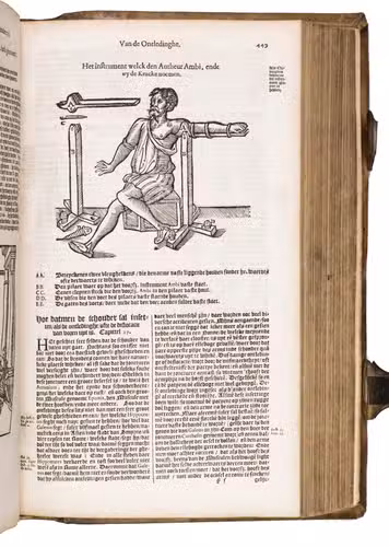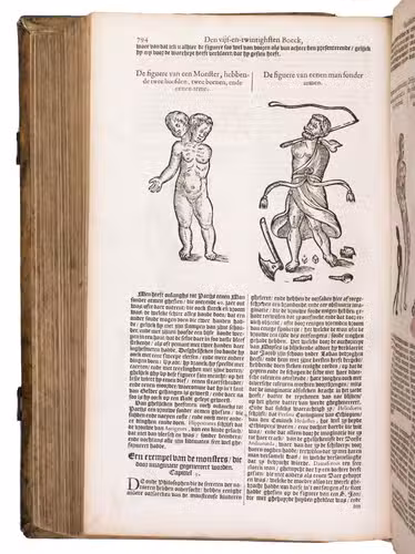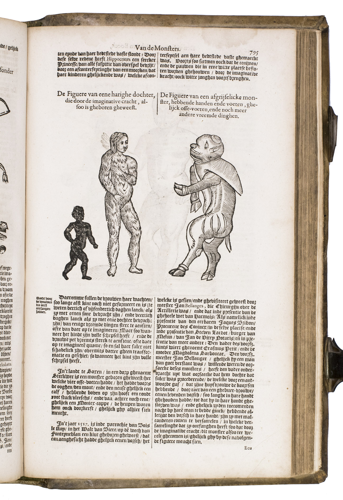 Dutch edition of the collected works of the famous French surgeon Ambrosius Paré (1517-1590), great renovator of surgery in France, who also profoundly influenced the practice of surgery throughout Europe. Paré is especially remembered for his abandonment of boiling oil and the cautery, and for his revival of podalic version. He invented many new surgical instruments, and instruments for dentistry. Paré was raised in a poor family, he started his medical career as an assistant barber. He worked his way up and became an outstanding surgeon, and the greatest military surgeon before Larrey could be named such over 200 years later. His writings are still popular for the vivid case histories, which Paré mainly drew from his own practical experience. For example, in the present work, many examples and illustrations are given on procreation and monsters, a part which actually deals with obstetrics. Paré had problems with the Paris physicians during the 1570's. Since he had not asked permission for publication of his medical writings at the medical faculty of the Paris university, and because he used to write in the common tongue - he did not speak or write any Latin - he provoked the anger of the physicians, who feared rivalry from surgeons. They tried to destroy Paré with the help of the law, but it turned out that the king had given the great surgeon a 10-year privilege in 1572, granting Paré the right "to employ such printers as seems good to him".