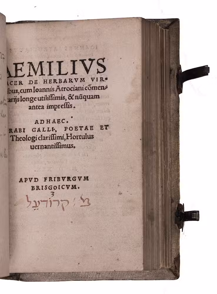 Four editions printed and published in Freiburg and nearby Strasbourg from 1528 to 1531, containing six works of medical and pharmacological interest, all in the original Latin: the first edition of two Byzantine pharmacological works; the first edition of a Renaissance pharmacological work; an 11th-century verse description of nearly a hundred herbal medicines, here in the second edition to include the additions and commentaries of 1527; and the third and best edition of the first lapidary, written around 1100, discussing precious stones, especially the magical and therapeutic properties of gems.