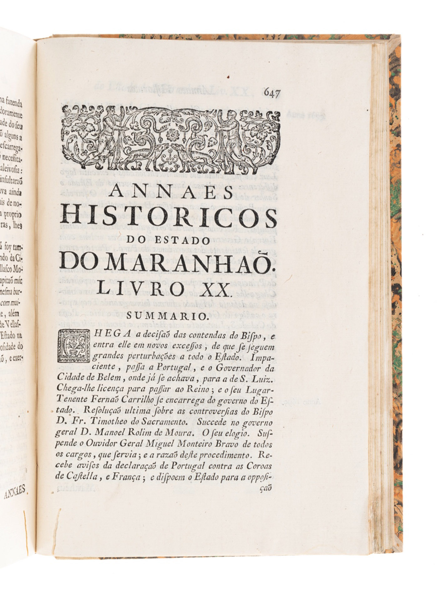 The Annaes contains a comprehensive geographical description of the region and the Jesuit and indigenous settlements, the information derived from the author´s position and his access to historical and current information. The work deals with a wide range of subjects up to the year 1718, commencing by its colonization, and focusing on its history, population, the struggle with the Dutch and their attempts to seize control of Brazilian ports, the Amazon River, and the navigation of the chain of rivers. It would be hard to overestimate the immense importance of this chronic of Brazil.