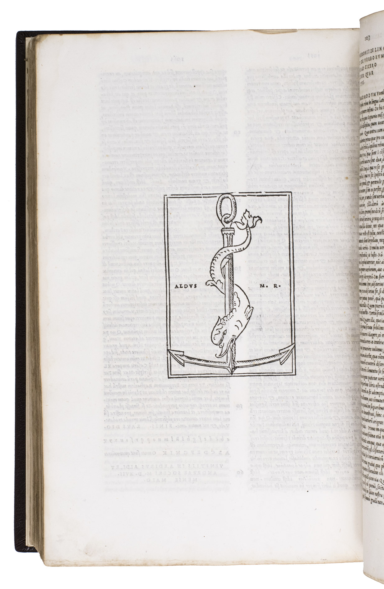 The title page is somewhat soiled, the outer corners of the first three leaves have been reinforced, the last leaf has been mounted with preservation of the printer's device, some leaves are somewhat browned, a rust spot on col. 673. Otherwise in good condition. Adams P-721; Ahmanson-Murphy II, 132; The Aldine press 151; Bibliotheca Aldina 34; BM STC Italian p. 499; Edit 15 CNCE 36579; OPAC SBN RMLE017412; Renouard p. 81, no. 10 & p. 63, no. 6; USTC 847581.