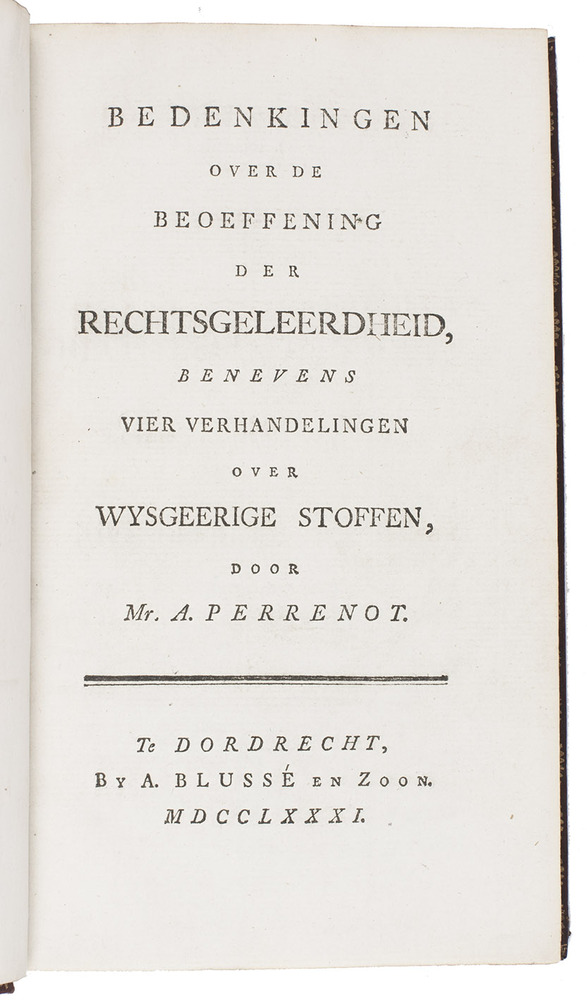 Dordrecht, Abraham Blussé and son (colophon: printed by Johan Joseph Besseling, [Utrecht]), 1781.