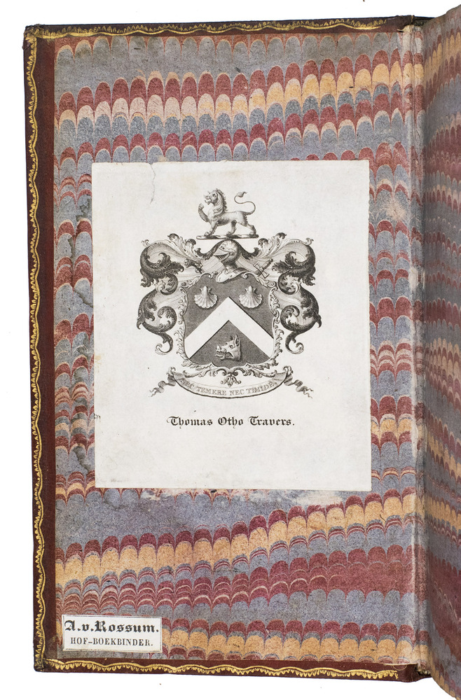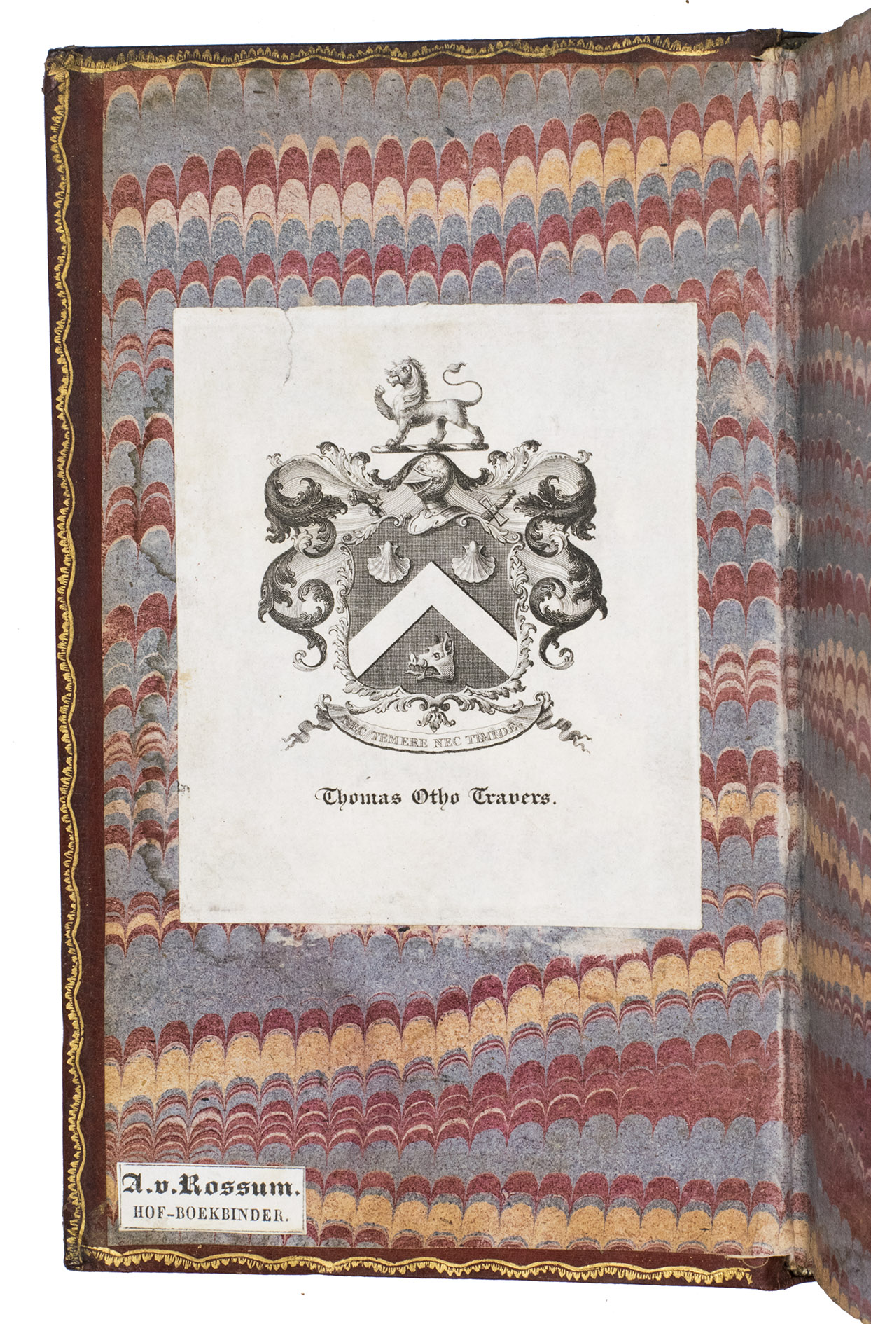 With the bookplate of Thomas Otho Travers (1785-1844), friend of Stamford Raffles. With some minor waterstain at the foot of the French treatise and the corners slightly bumped, otherwise in very good condition and well bound. Dekkers, Bibl. Belg. juridica, p. 133, no. 5; STCN (4 copies); WorldCat (6 copies, incl. 3 the same); ad 2: cf. Dekkers, p. 133, no. 4 (1779 ed.); Quérard VII, p. 63 (1775 ed.); for Perrenot: V.d. Aa XV, p. 205; for the binder: J. Storm van Leeuwen, "1725-1830 Bookbinding" on www.bibliopolis.nl.