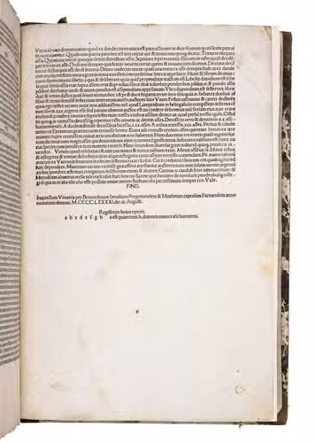 The present Venetian edition closely follows the layout and text of earlier Venetian and Trevisan printings with Fontius commentary (1480-1482), and reflects the high typographical standards of late 15th-century Venice.