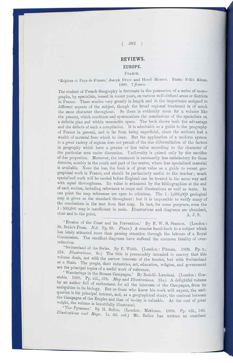 [London, W. Clowes, May 1910]. With a full-page black and white lithographed map (19x12.5 cm). 4to. With a full-page lithographed black and white map. Modern blue wrappers. 579-581 pp.