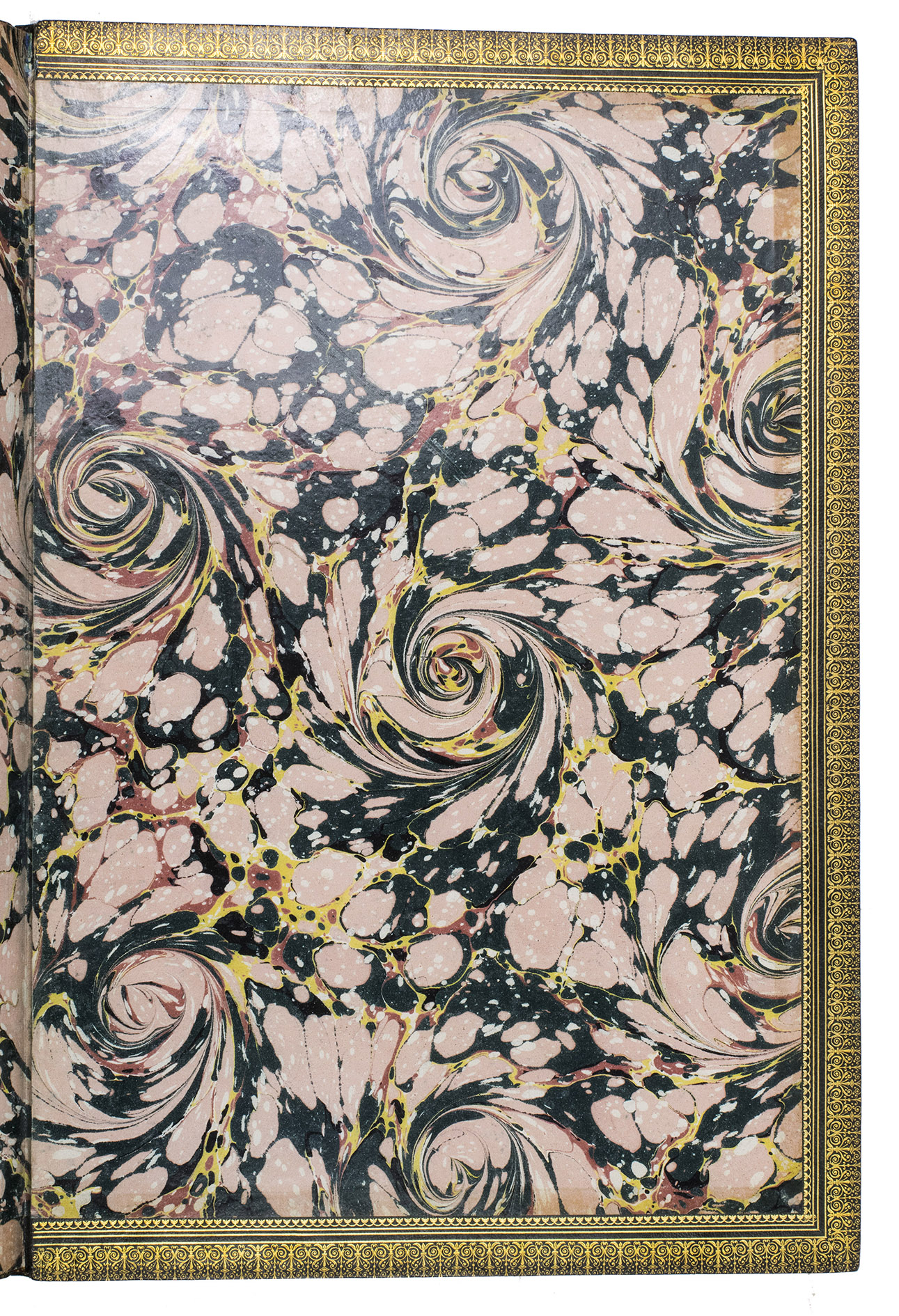 From the library of the notable theatre decorator and interior designer Polycarpe Charles Séchan (1803-1874), with his small red library stamp on each of the seven plates. The top 5 mm of six plates very subtly strengthened and one on the fore-edge, and some spots throughout, otherwise in very good condition. Binding with some faint traces of wear along the hinges, but otherwise fine. Collection Séchan 152 (this copy); Berlin Kat. 1411; Huth, p. 28; Muller, Historieplaten 3516.
