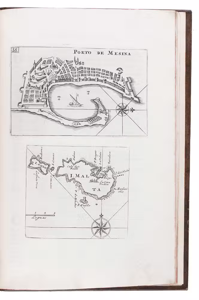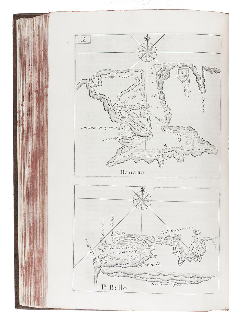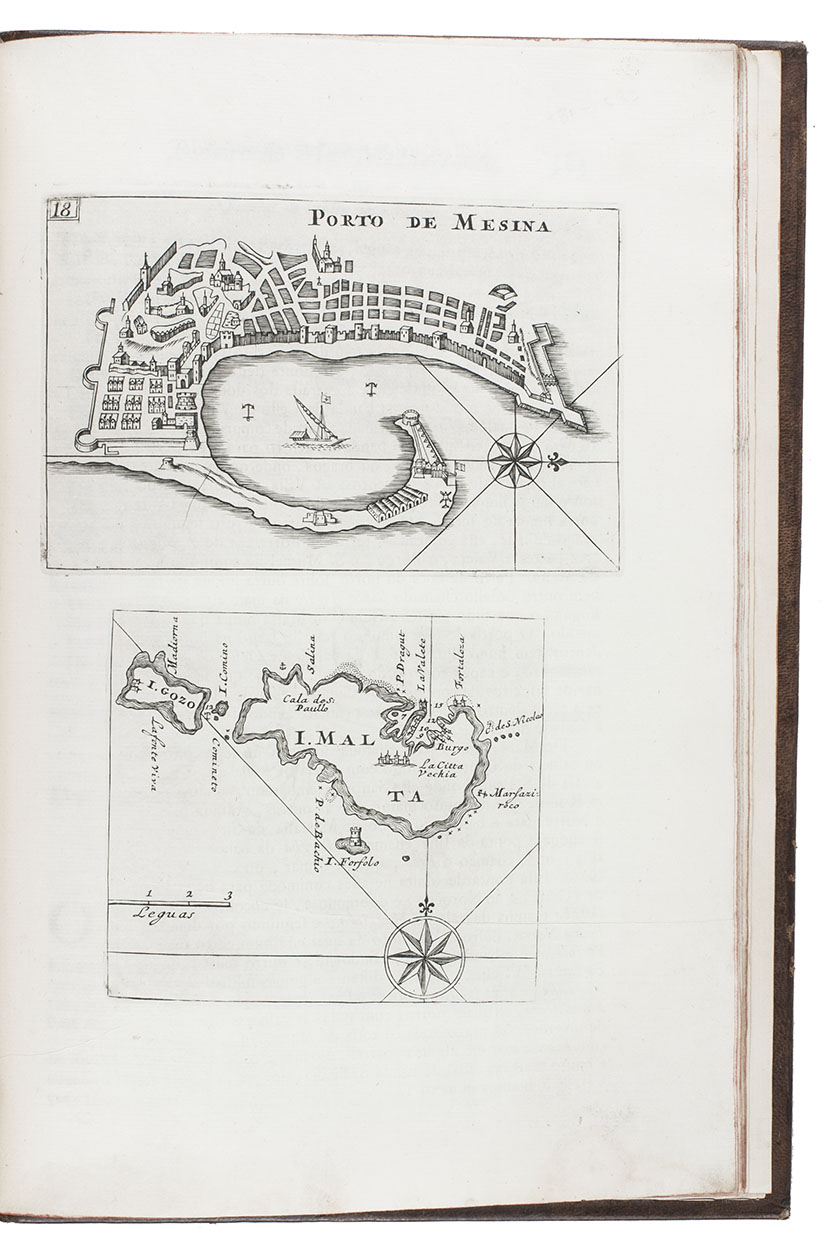 Lisbon, Miguel Manescal da Costa, 1762. Folio (30 x 20.5 cm). With 21 engraved plates (1 folding), 1 nearly full-page engraving of a compass rose and about 10 woodcut diagrams in the text. Contemporary or near contemporary tanned sheepskin, richly gold-tooled spine, new endpapers. [12], 603, [1] pp.