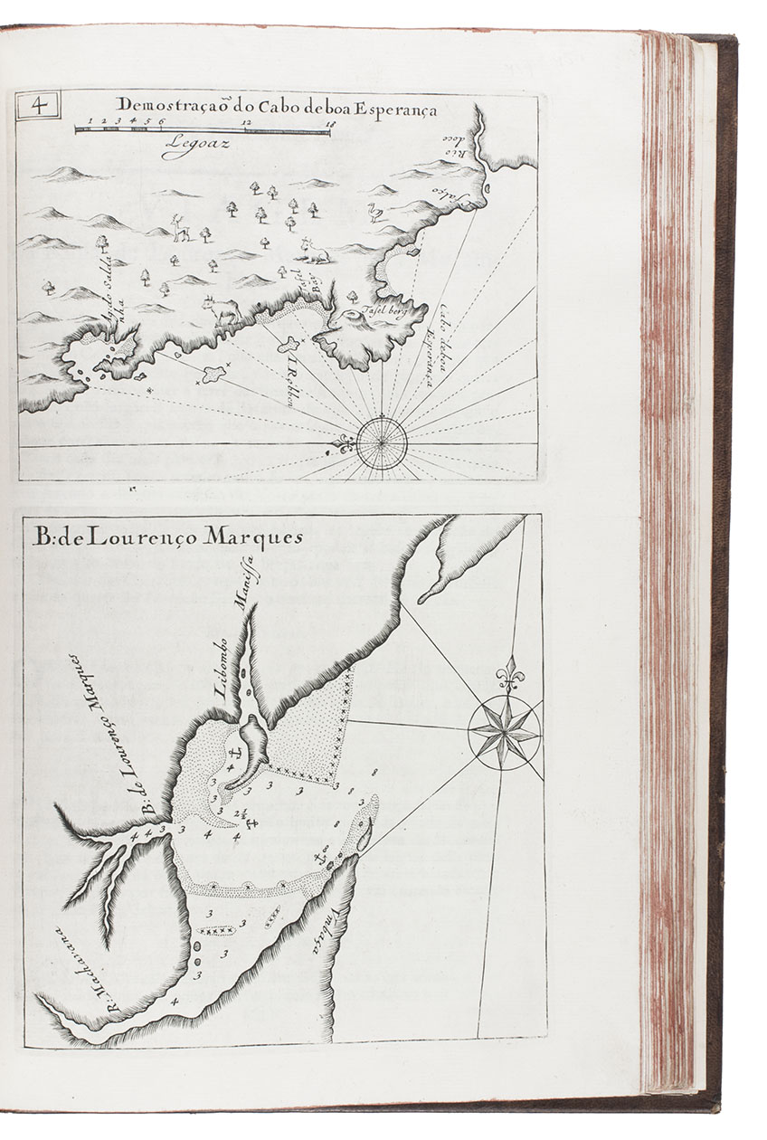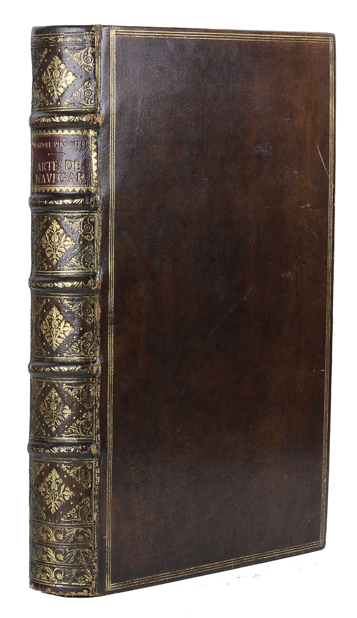 With bookplate. Some marginal tears and worm holes restored in the foot margin at the beginning and end, but otherwise in very good condition. Somewhat worn at the hinges and with some scratches on the back board, but binding otherwise very good. A practical Portuguese handbook of navigation that remained a standard work into the early 19th-century. Borba de Moraes, p. 672; Rodrigues 1899 note; Sabin 62883 note; cf. Bosch 144.