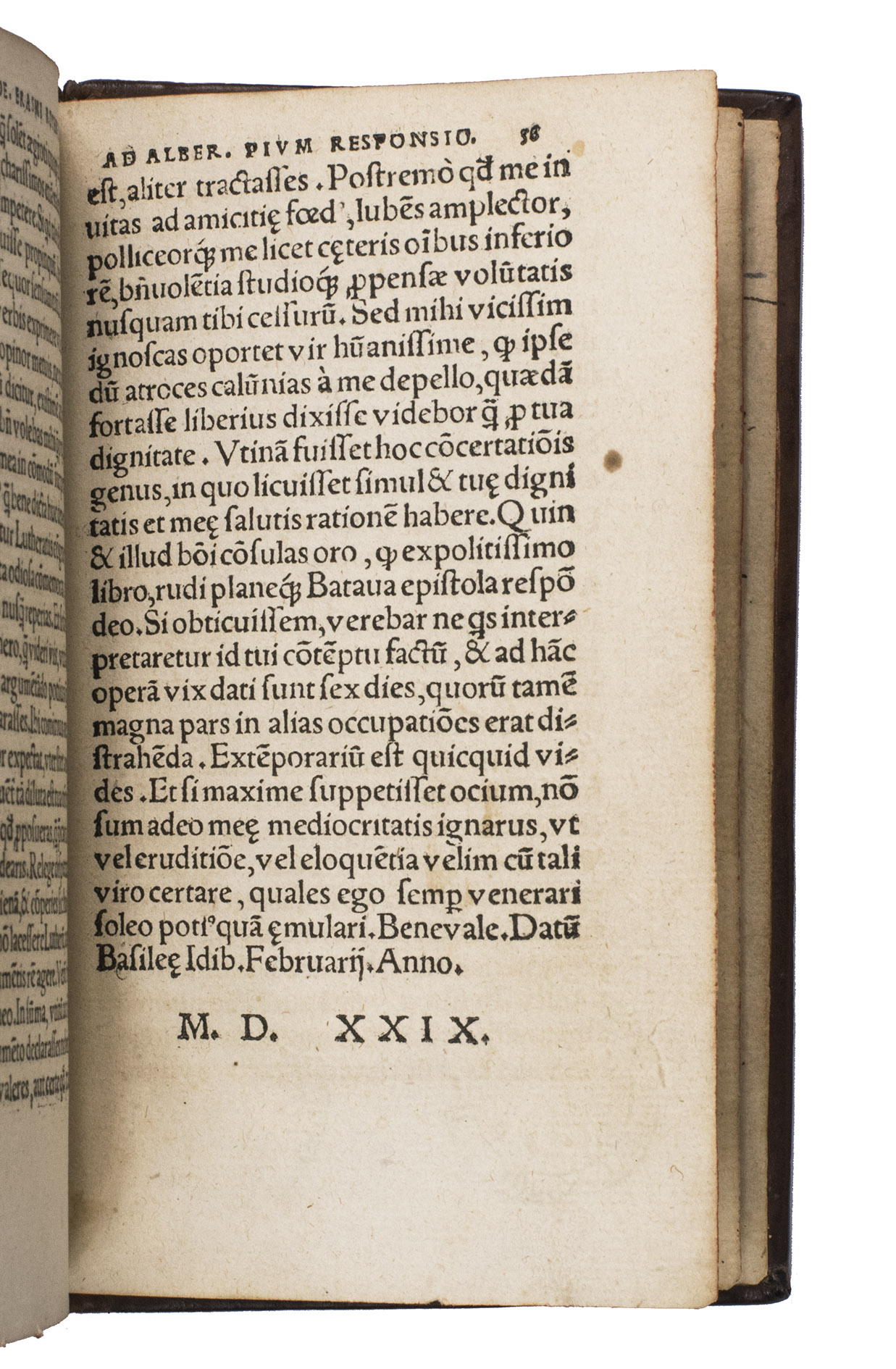 With: (2) ERASMUS, Desiderus. Responsio ad epistolam paraneticam Albert Pii Carporum principis.