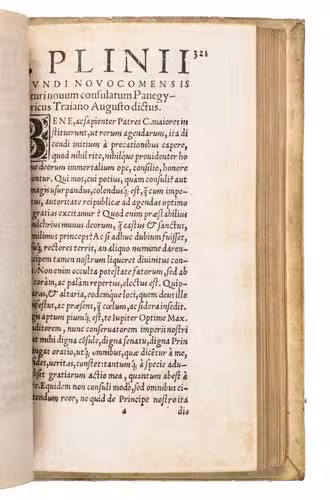 Of his speeches delivered during his successful senatorial career only the one of thanks to Trajan for his consulship in AD 100 survives and is known as the Panegyricus Traiano Augusto dictus, and is added on p. 321-405 of our edition. The work further includes Suetonius' set of biographies of Roman men of letters, Obsequens' work on prodigies that lived from 249-12 BCE, and Cataneus' life of Pliny.