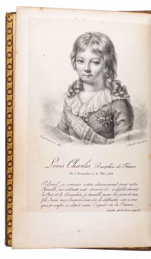 Paris, C.J. Trouvé, 1824. 8vo. With lithographed frontispiece-portrait of Dapuhin by Constans after a drawing by Eugénie Lebrun. Contemporary richly gold-tooled straight grained orange/brown morocco, gold- and blind-tooled boards with the arms of William I on each side, gold-tooled spine with plumed helmets, a dark-brown title-label and the name of the binder ("SIMIER.R.DU.ROI"), gold-tooled board edges and turn-ins, gilt edges. XII, 512 pp.