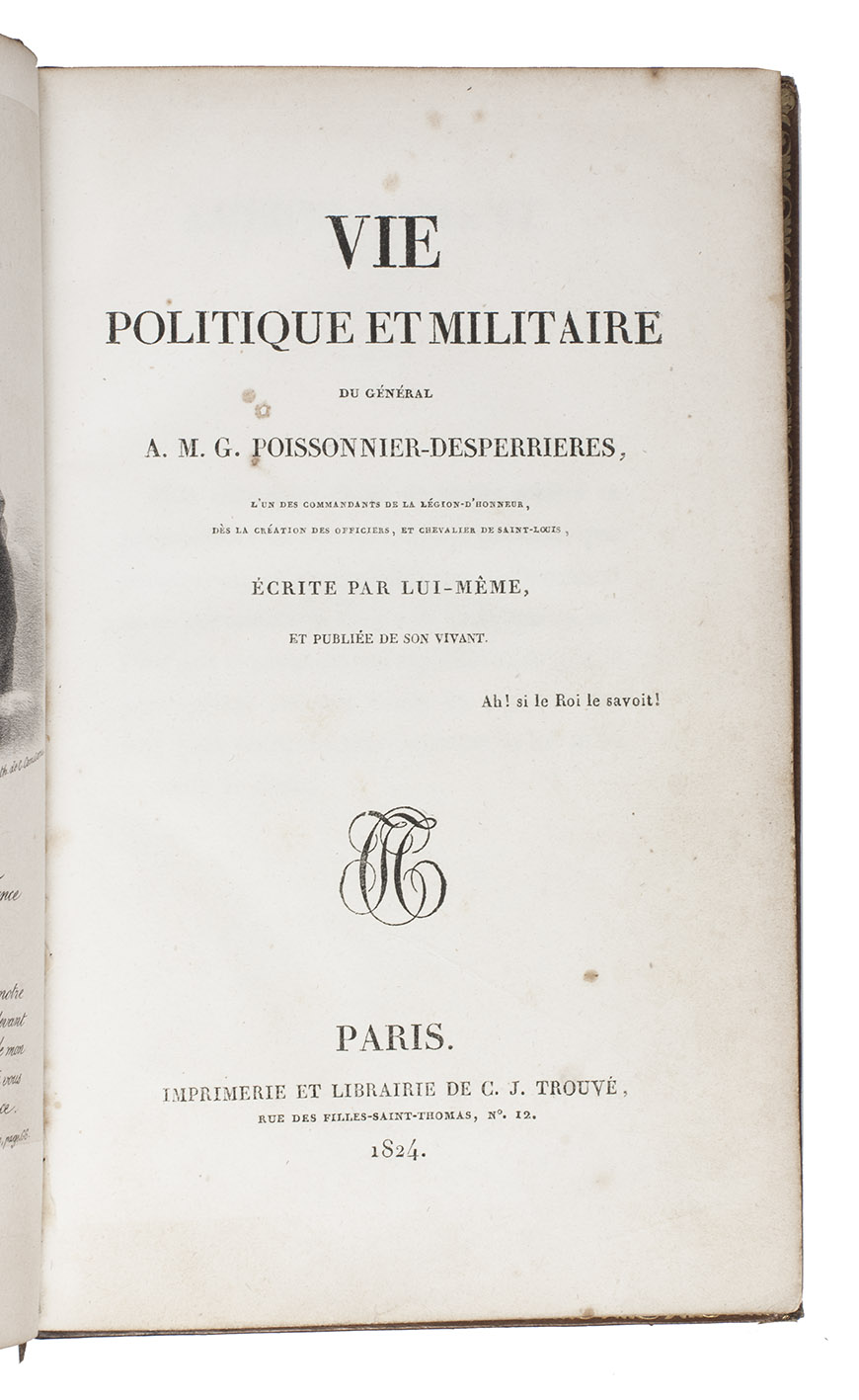 Vie politique et militaire du général A.M.G. Poissonnier-Desperrières ..., écrite par lui-même, et publiée de son vivant.