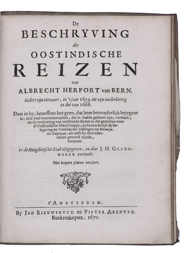 -HERPORT, Albrecht. De beschryving der Oostindische reizen ... sedert ... 1659. tot ... 1668. ...