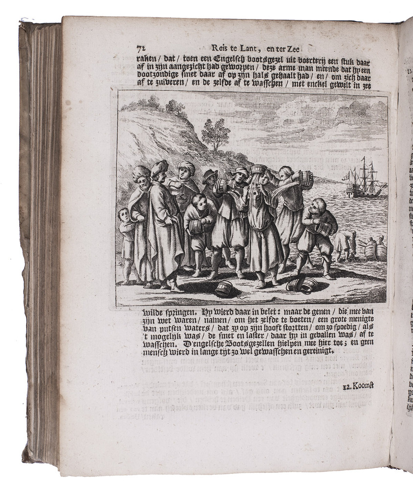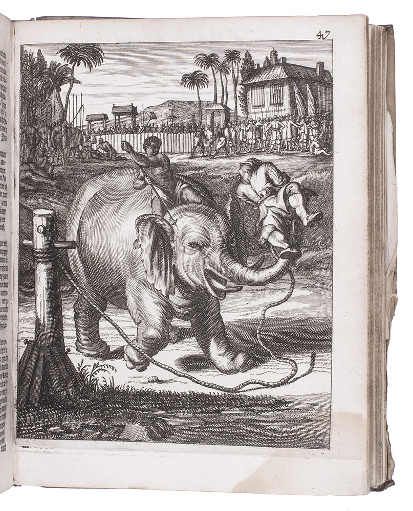 Ad 2: First Dutch edition of a popular account of an overland voyage from France to the Far East, ending in China, by Jacques de Bourges (ca. 1630-1714), who accompanied the French titular Bishop of Beirut, Pierre Lambert de la Motte, on the newly established Société des Mission Etrangères's first expedition to the Far East. They left Marseille in June 1660, and travelled via Malta, through the Holy Land, Syria, Iran, Iraq and India, to Siam (Thailand). Bourges gives extensive descriptions of the people, their customs and costumes, and the places he visits. The book ends with some notes on the bishop's voyage to China by sea and on Bourges's return voyage to France and to Rome, where he reported on the conditions for missionary work in Siam.