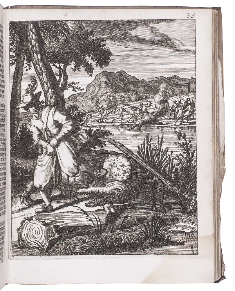 With a transparent stain in the lower outside corner through much of the book and a couple quires slightly browned in ad 2, but generally in good condition. The binding is also stained stained, but is otherwise good. editions. Ad 1: Cordier, Sinica, cols. 1986-1987; Howgego P126 (for Santo Stefano and King Houten I see S40 & H48); STCN (7 copies); Tiele, Bibl. 872; for Zheng Chenggongs capture of Formosa, see also Tonio Andrade, De val van Formosa; Lach & Van Kley III, pp. 1818-1823 (based on an English translation of Coyett's 1675 Dutch account); Walravens, China Illustrata 108 (1677 German trans. of Coyetts 1675 Dutch account) ; ad 2: Howgego P11 (see also D39); Lach & Van Kley III, pp. 1186-1189; Scheepers I, 589; STCN (4 copies); Tiele, Bibl. 178; cf. Cordier, Sinica, col. 827 (1666 French ed.); Chadenat 532 (1666 French ed.); ad 3: A. Cheke, "The dodos last island ...", in: Proc. Royal Society of Arts & Sciences, 7 (2004), pp. 7-22; Howgego S4, I22, H74; Lach & Van Kley III, pp. 529-534; Landwehr, VOC 313; STCN (5 copies); Tiele, Bibl. 952.