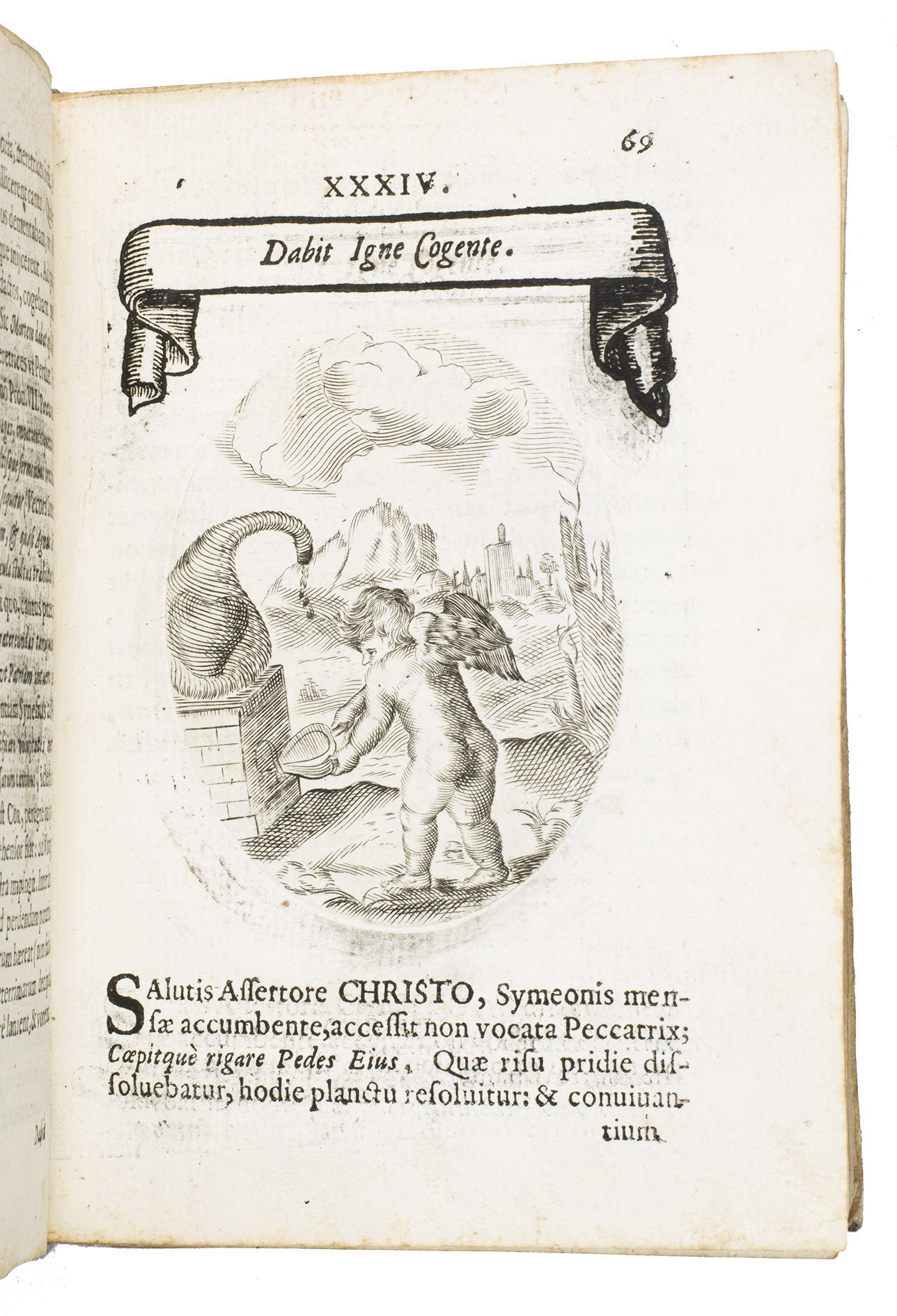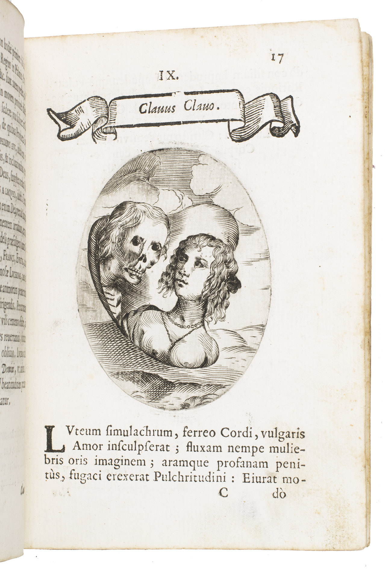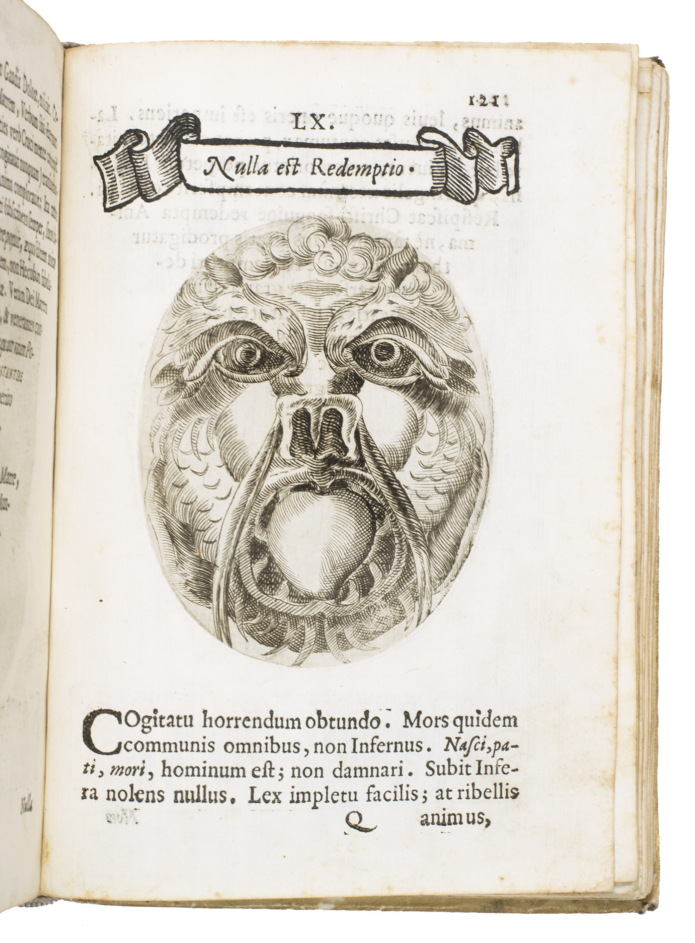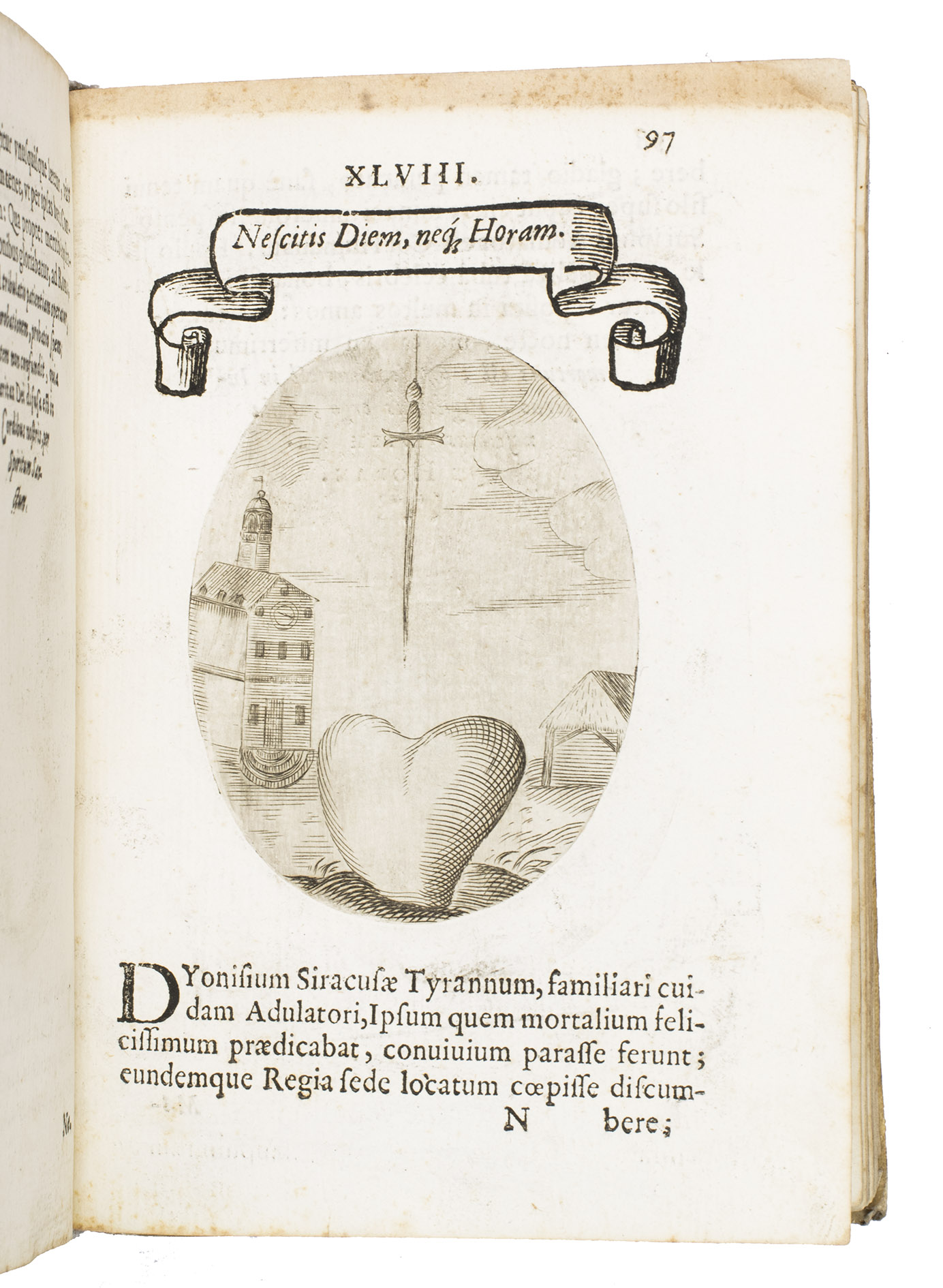 Verona, superiorum permissu, 1645. 4to. With engraved allegorical title-page (signed ''G.G.'' below right) showing King David and Saint Paul holding a heart, with the arms of the dedicatee, Cardinal Jules Mazarin, at the foot, 101 engraved emblems in text, each on the theme of the heart, with a letterpress title in any of about 7 different woodcut panels, and a letterpress explanation below, continuing onto the verso. Each is printed from an oval plate (10.5 x 8 cm). Contemporary sheepskin parchment. [8], 208 pp.