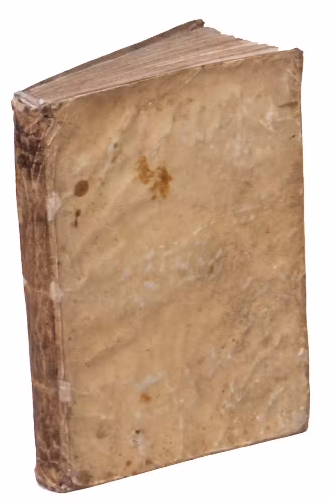 With the early owner's inscription of a painter ("pictoris"), Dominicus Dentonus, at the foot of the title-page. In good condition, with only some small worm holes in the foot margin of the last two leaves and some minor marginal soiling. Binding wrinkled and soiled. ICCU (9 copies); Landwehr, Romanic emblem books 610; Praz, pp. 151-152.