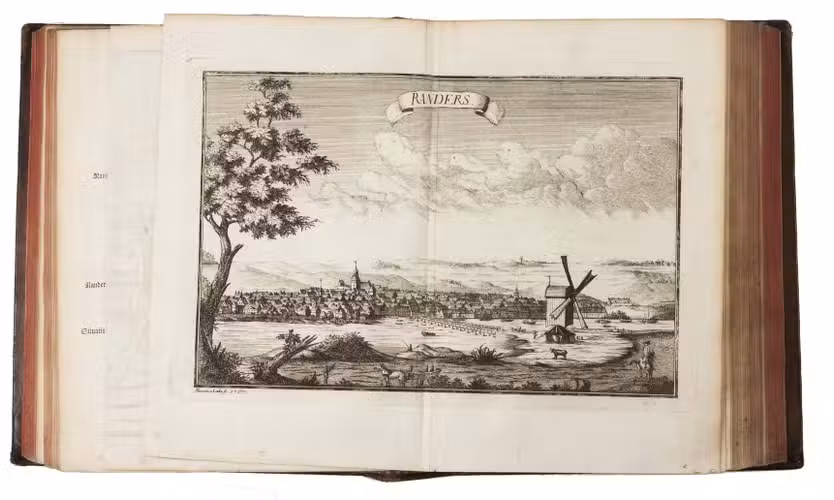 Rare complete set of the first and only early edition of the monumental atlas of Denmark by Erik Ludvigsen Pontoppidan (1698-1764), continued after his death by Hans de Hofman, and richly illustrated with the latest maps and views of all important sights and buildings in Denmark, engraved by I. Haas, I.G. Schmid and others. In addition to its value as a rich and beautiful atlas of 18th-century Denmark, it is of considerable importance for its extensive and scholarly description and history of the country, from its origins up to the time of publication. Each volume gives a list of its plates, and a 50-page index at the end of volume VII covers all seven volumes.