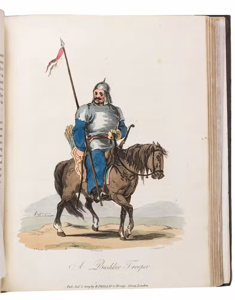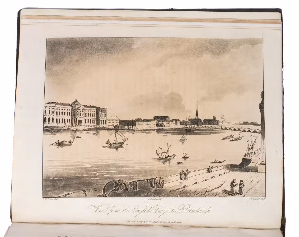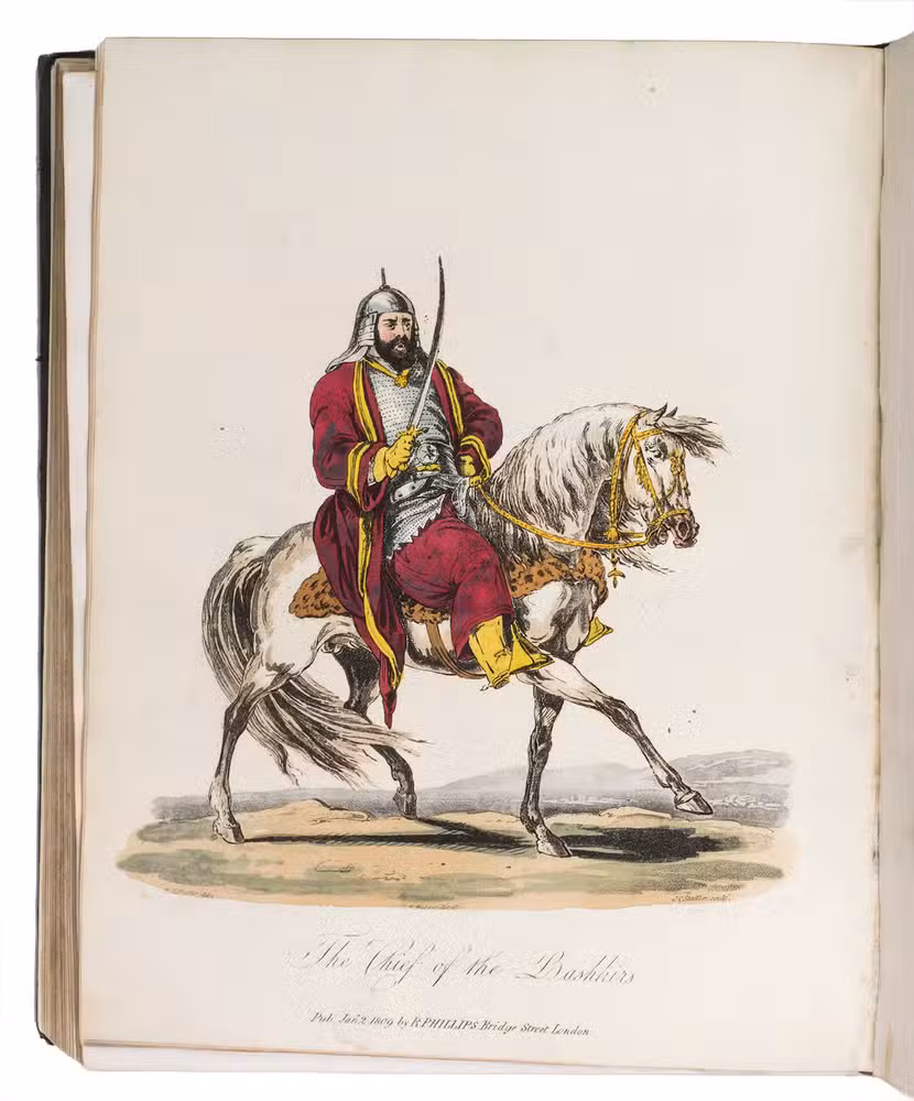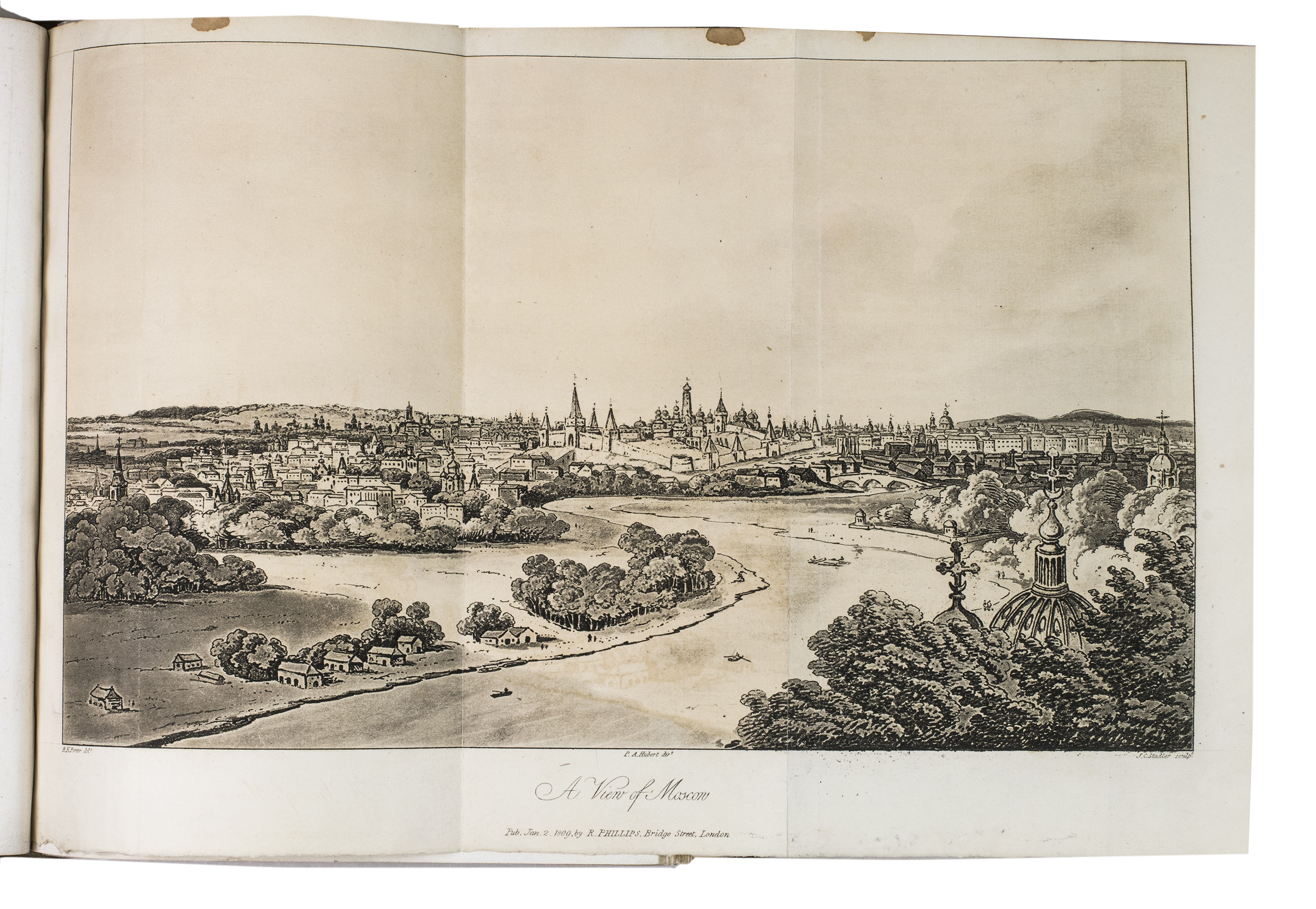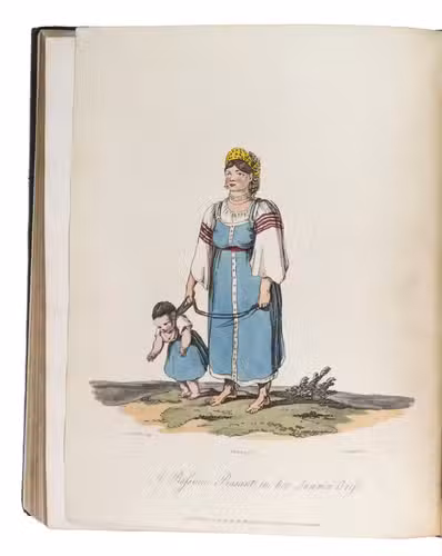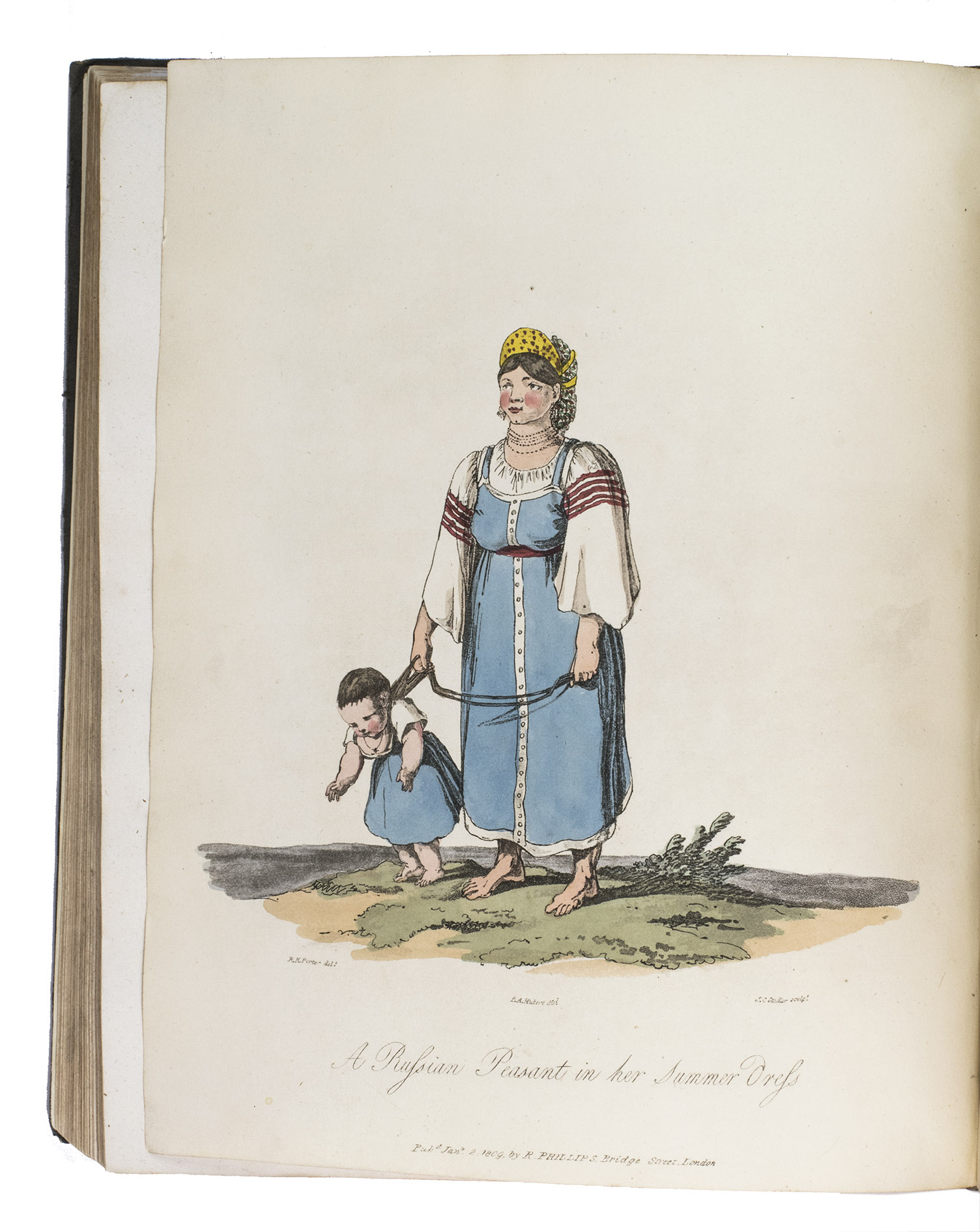 Second edition of a richly illustrated account of Russia and Scandinavia at the beginning of the 19th century by Sir Robert Ker Porter (1777-1842). Porter, a traveller, diplomat and painter, went to Russia in 1805, but had to leave in 1806 due to an unhappy love affair with a Russian princess. During the next two years he travelled through Scandinavia and other European countries. The present work reflect his experiences, discussing his journey to Russia, life in St Petersburg, the Russian nobility, peasantry and trades class, the Russian Orthodox Church, military events in Europe, the countryside in Finland and Sweden, King Gustavus Vasa of whom he etched a portrait, and more. The illustrations include buildings in St Petersburg and Stockholm, Russian tradesmen and their wives, cossacks, officers, soldiers, peasants, Bashkirs, Kirgizians, Swedish and Finnish peasants and country scenes, and the highly characteristic illustrations of the inside of a Russian postal office and Swedish women doing laundry in an ice-hole in a frozen river.