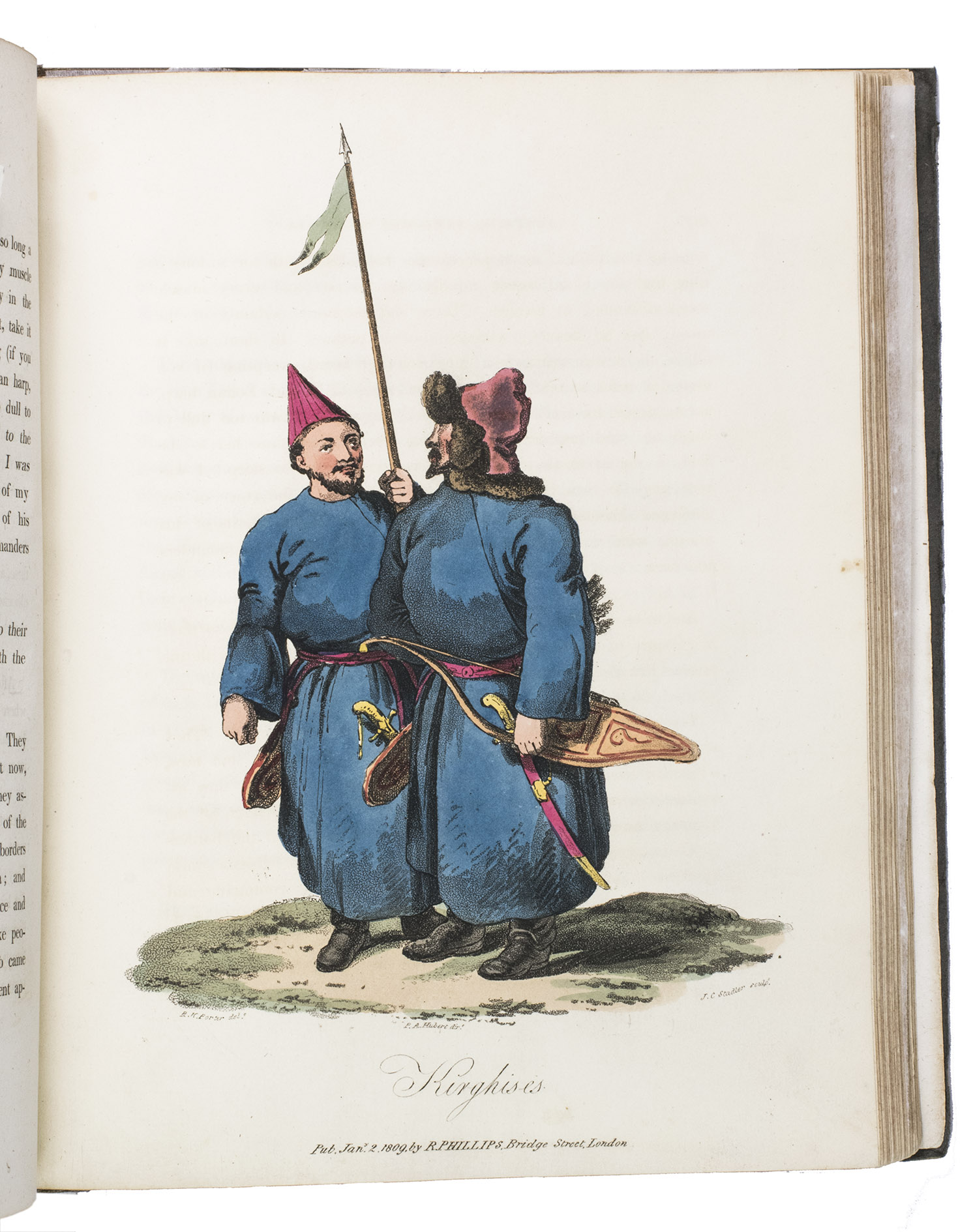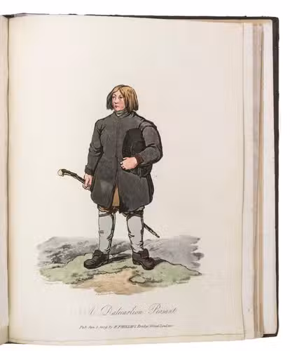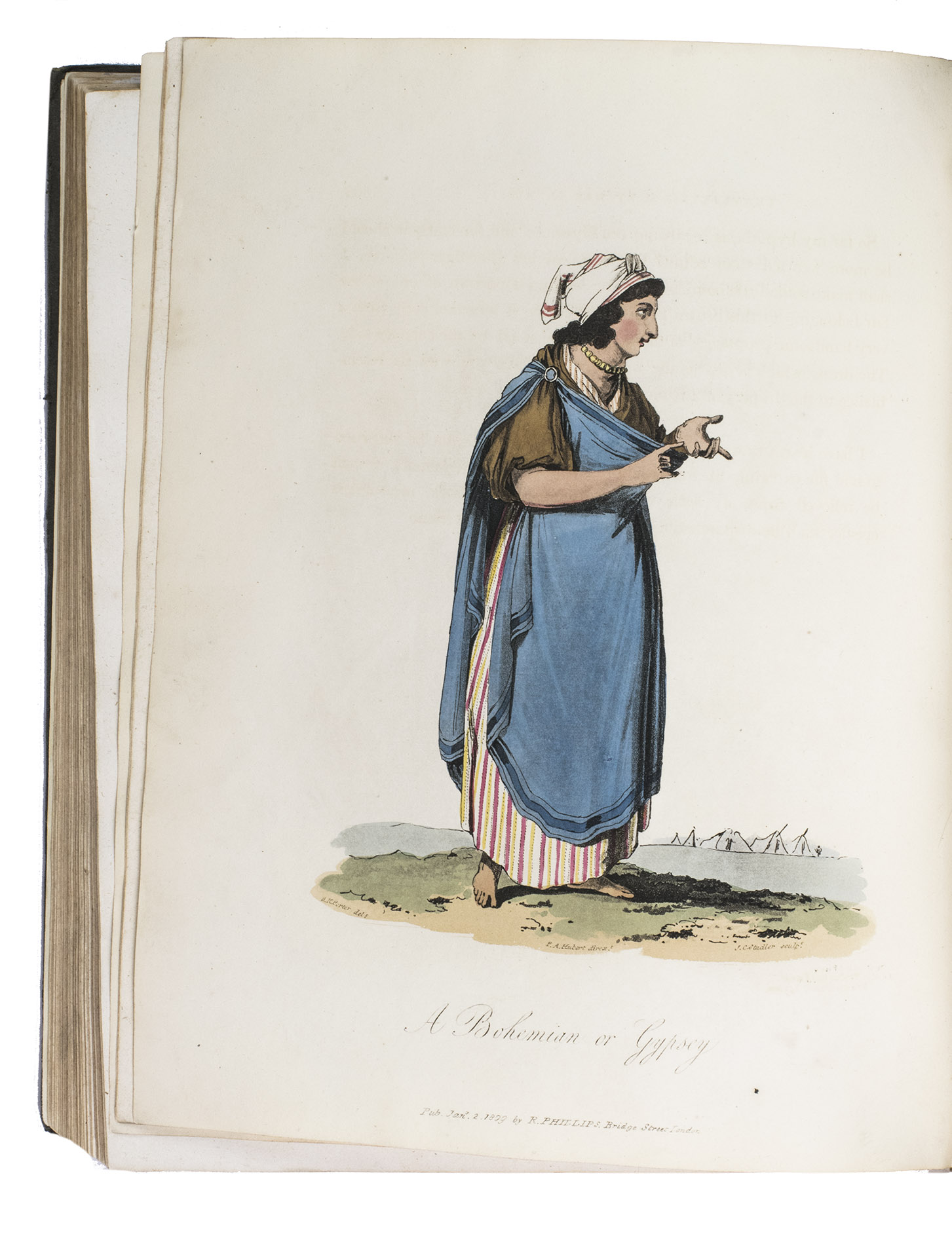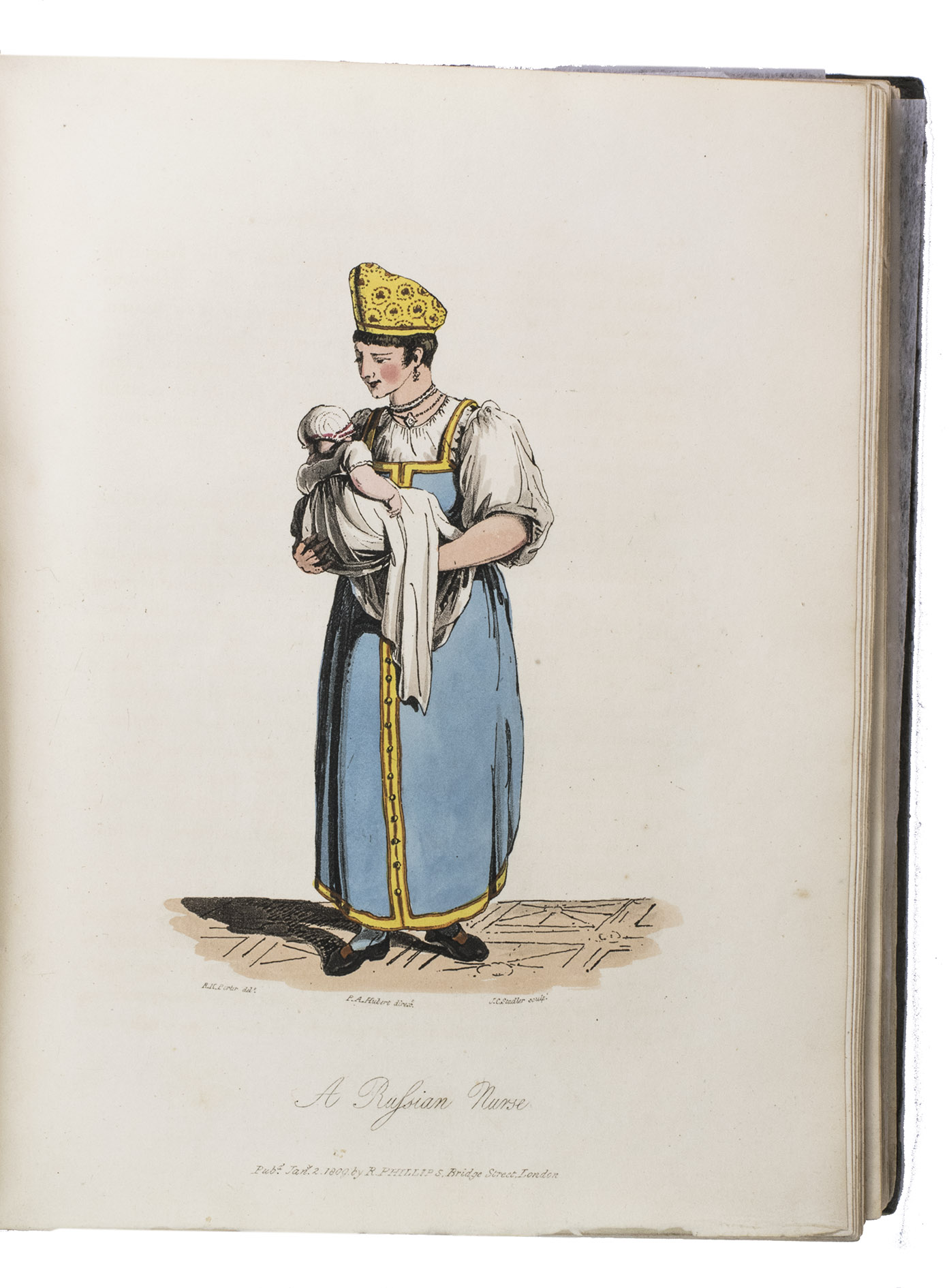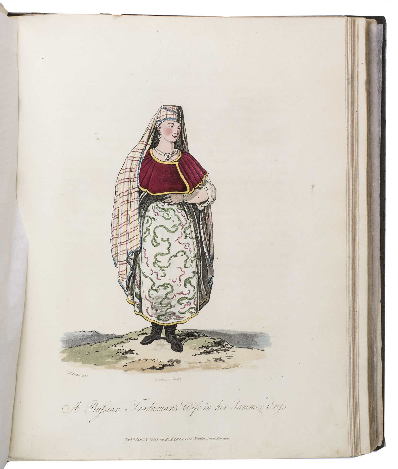 London, for John Stockdale (back of title-page: Strahan and Preston), 1813. 2 volumes bound as 1. 4to. With 41 etched plates (12 sepia washed views, 1 uncoloured portrait, and 28 aquatint costume-plates) by J.C. Stadler after drawings by the author. Contemporary half cloth. XII, 303, [1 blank]; VIII, 296 pp.