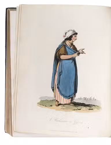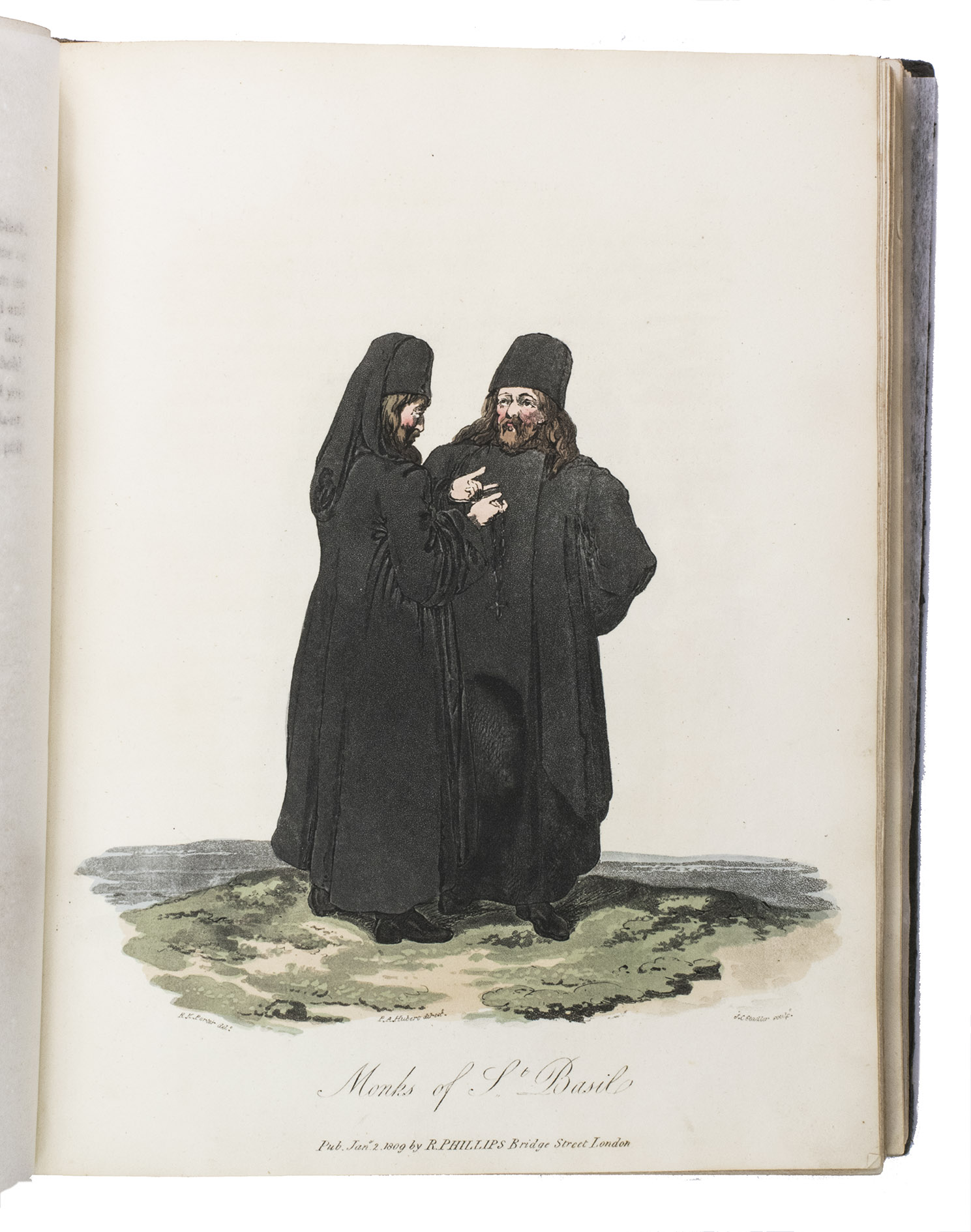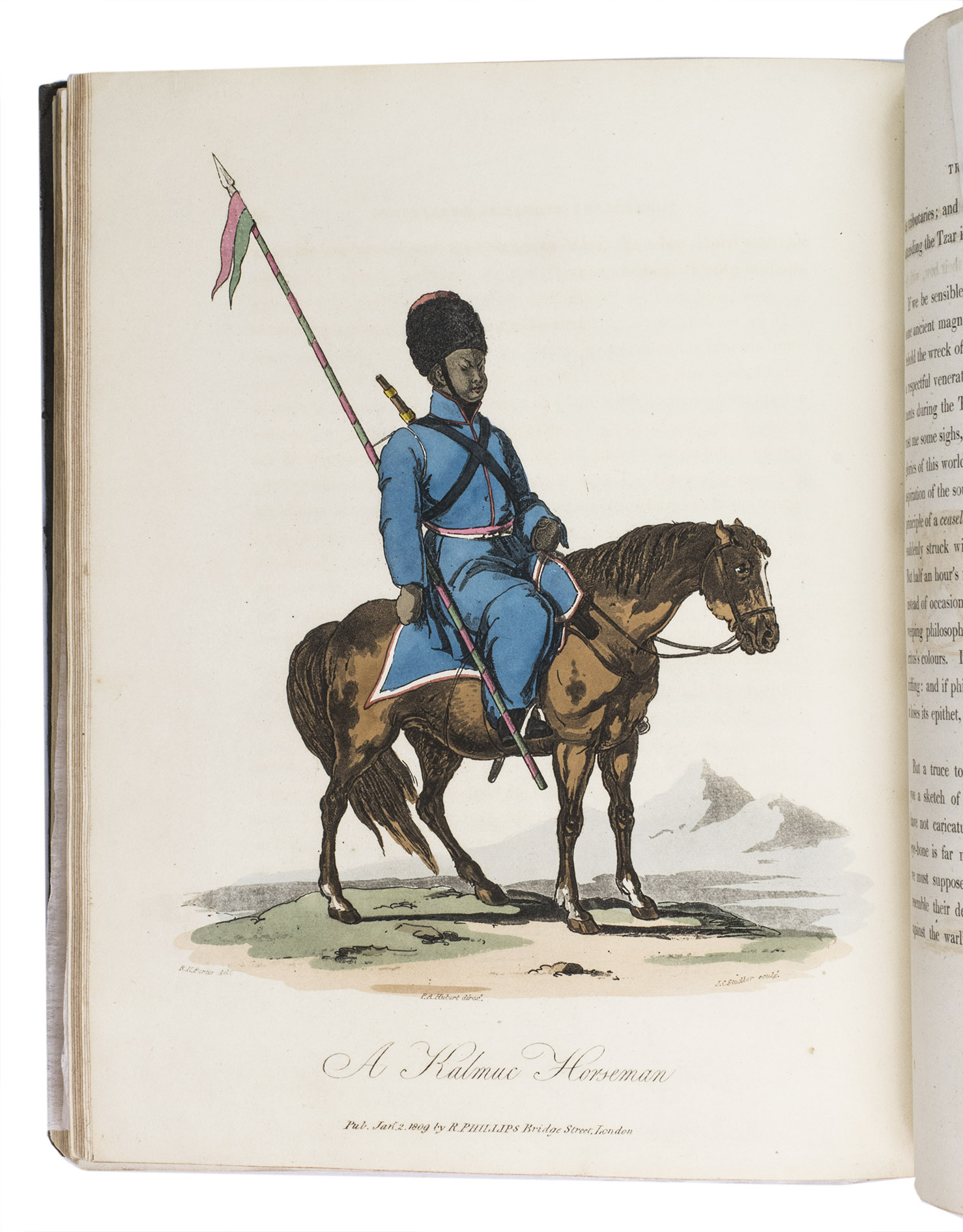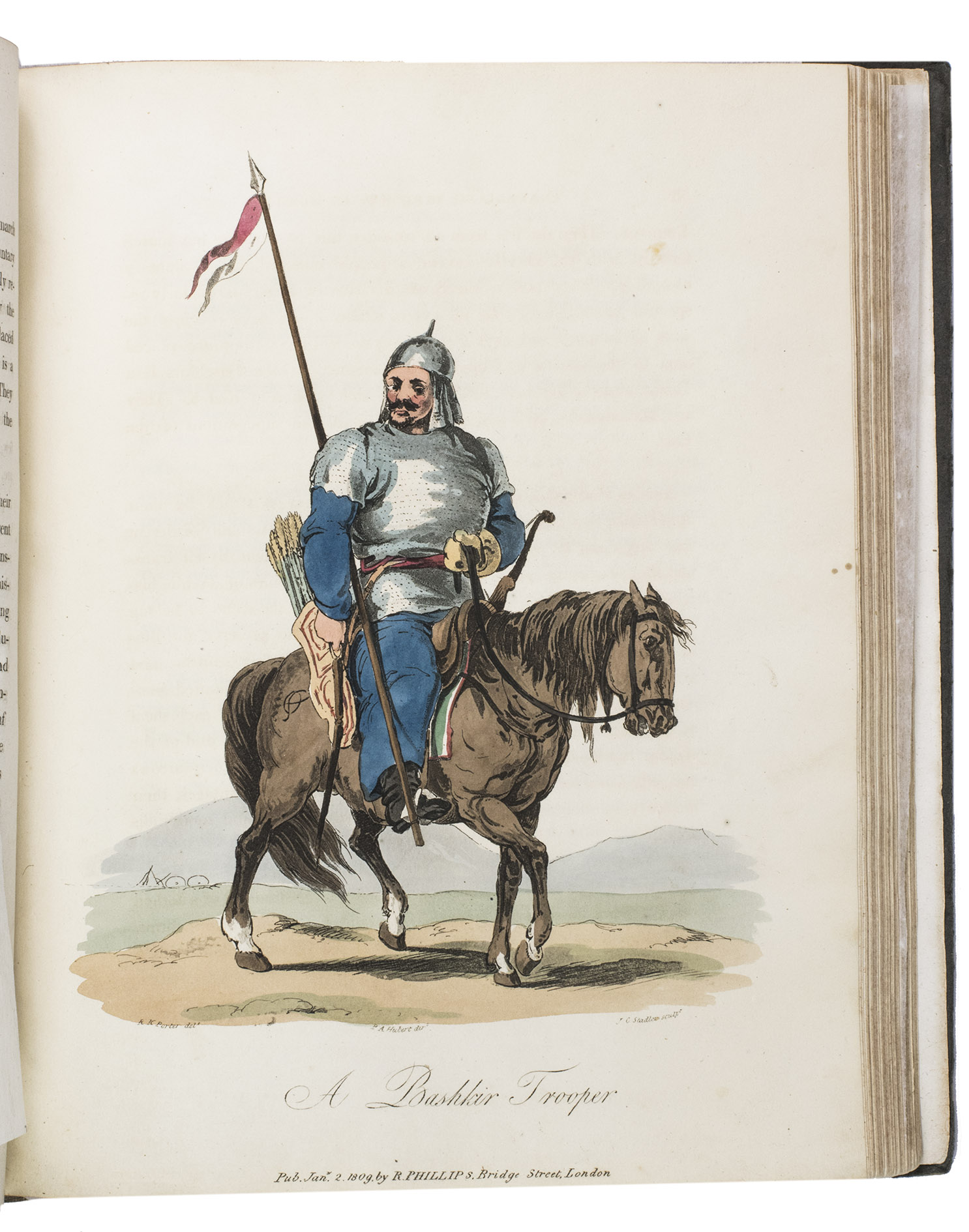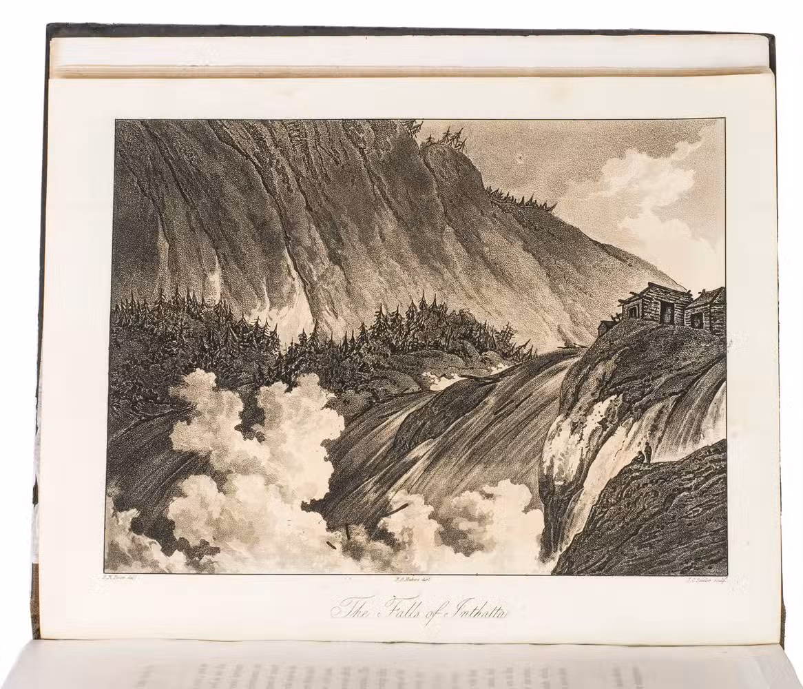 London, for John Stockdale (back of title-page: Strahan and Preston), 1813. 2 volumes bound as 1. 4to. With 41 etched plates (12 sepia washed views, 1 uncoloured portrait, and 28 aquatint costume-plates) by J.C. Stadler after drawings by the author. Contemporary half cloth. XII, 303, [1 blank]; VIII, 296 pp.