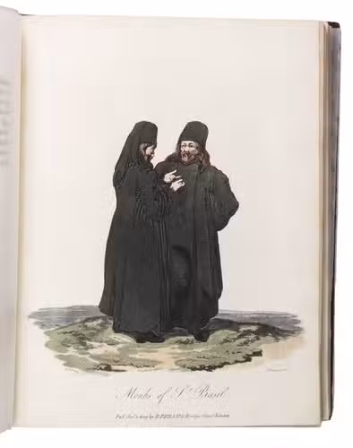 One tear along the fold of one plate. Binding slighly rubbed, hinges tender. A very good copy. Abbey, Travel 13; Cat. Russica P 1036; Colas 2407; Lipperheide 1346; Tooley, Coloured Plates 383.