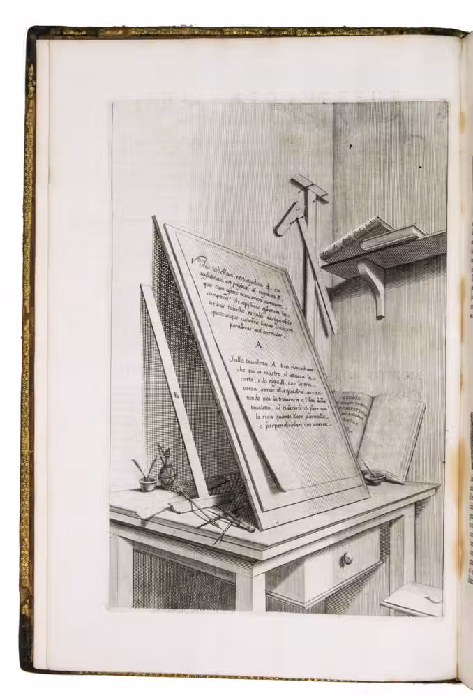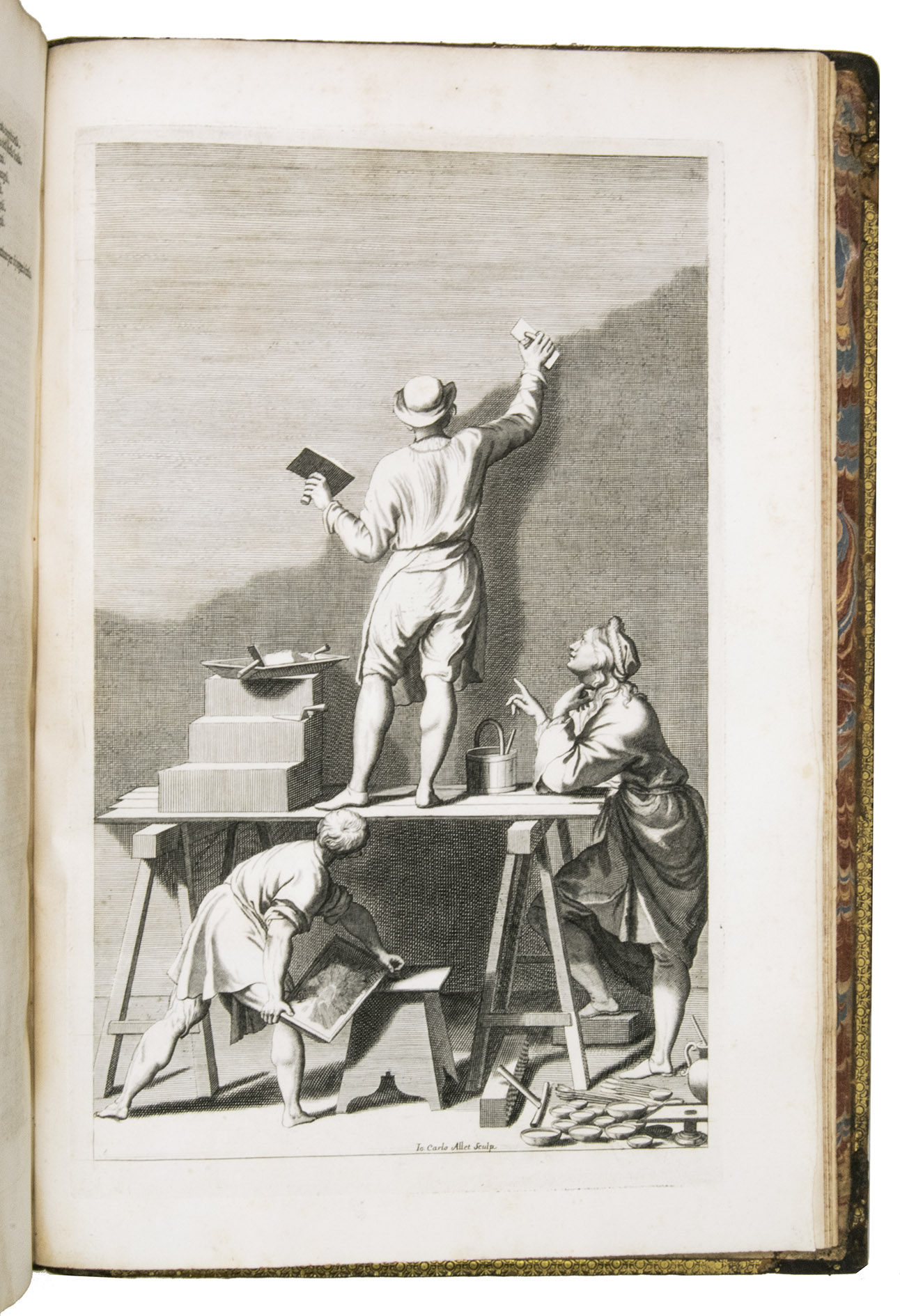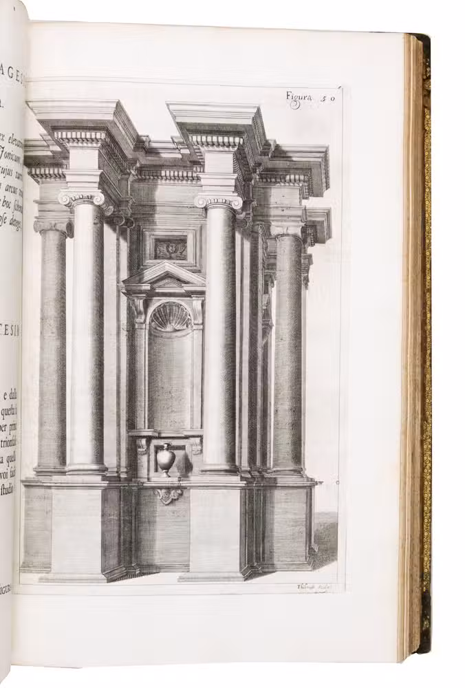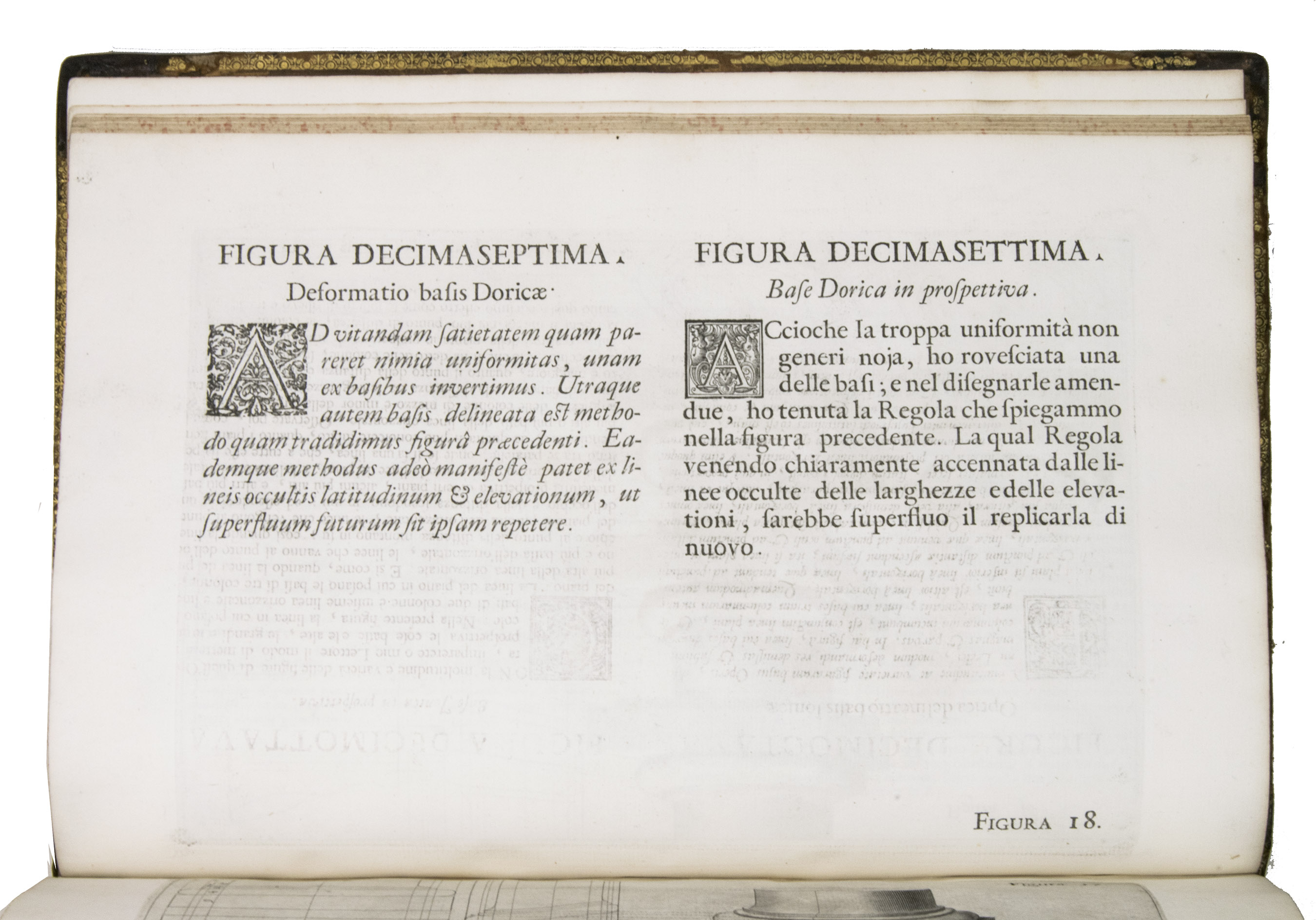 With the blind-stamp of the Theological Institute of Connecticut in some leaves. The binding shows clear signs of wear, with older restorations along the hinges which have weakened again over time. The first quire is loose, internally with some light occasional foxing, but mostly fine and clean. Overall in good condition. Fowler 251; Berl. Kat. 4725; Cicognara 854; Vagnetti EIIIb73; Wiebenson III.B.25; Cf. Kemp, The Science of Art, pp. 137-9, et passim.