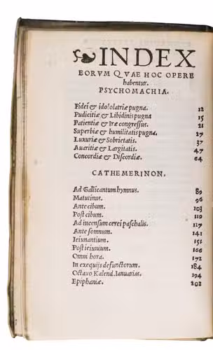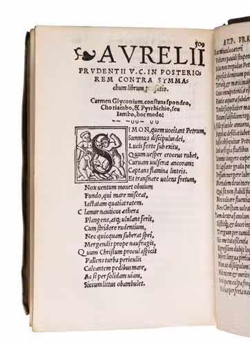 First Antwerp edition of the collected works of Aurelius Prudentius Clemens (348-405), one of the most significant early Christian poets of the Western tradition. Known for bridging classical Roman literary techniques with Christian themes, Prudentius poetry combines deep theological reflection with the elegance of Latin verse.