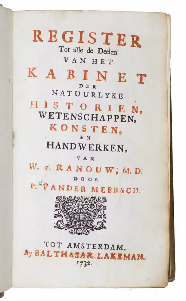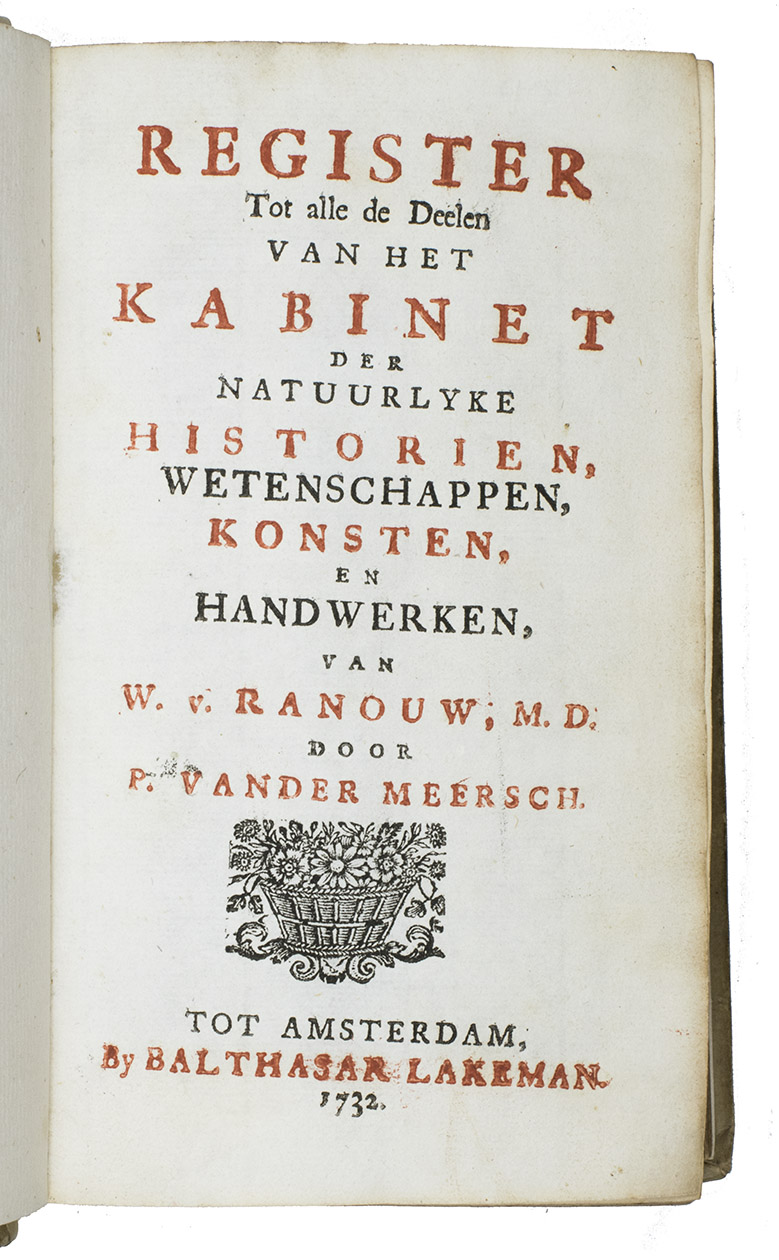 Including: MEERSCH, Pieter van der. Register tot alle de deelen van het kabinet ... van W. v. Ranouw.