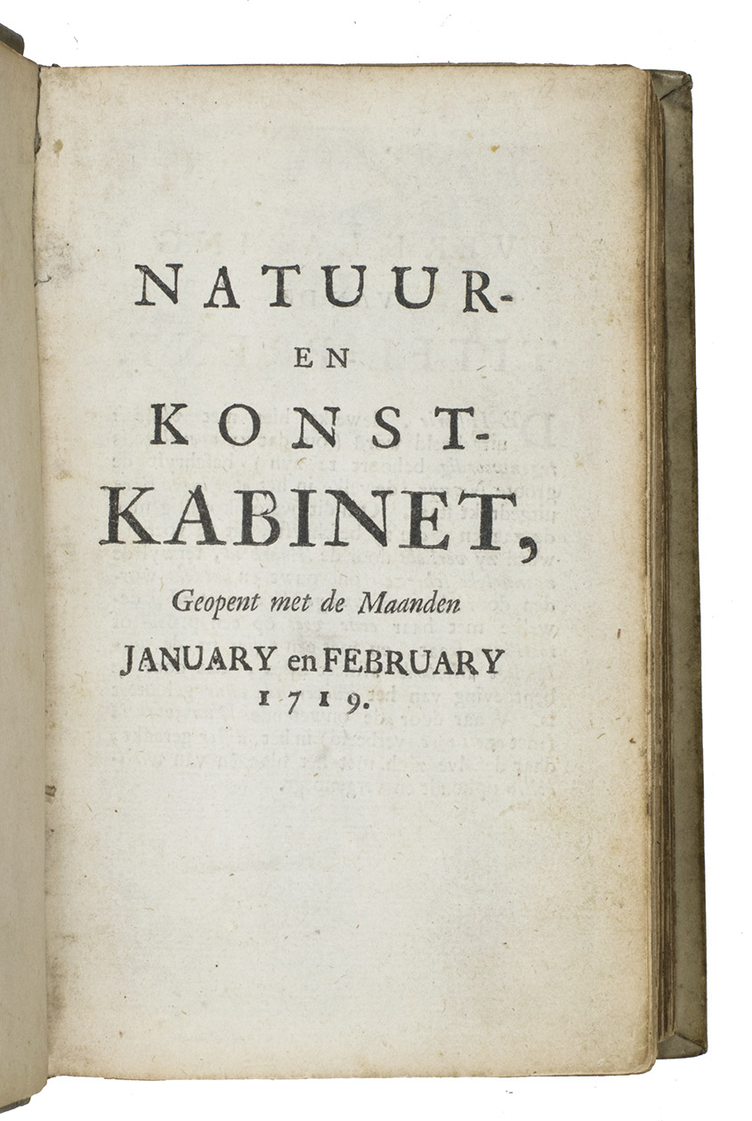 Kabinet der natuurlyke historien, wetenschappen, konsten en handwerken, geopent met de maanden January en February 1719. Verciert en opgeheldert met kopere plaaten.
