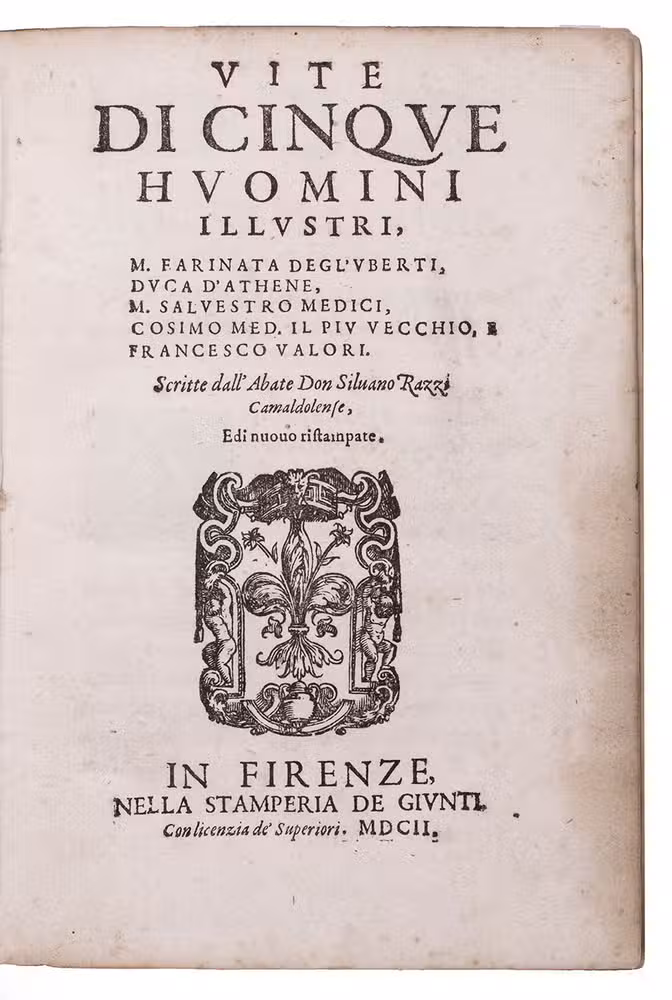 Vite di cinque huomini illustri, M. Farinata degl'Uberti, Duca d'Athene, M. Salvestro Medici, Cosimo Med. il piu vecchio, e Francesco Valori.