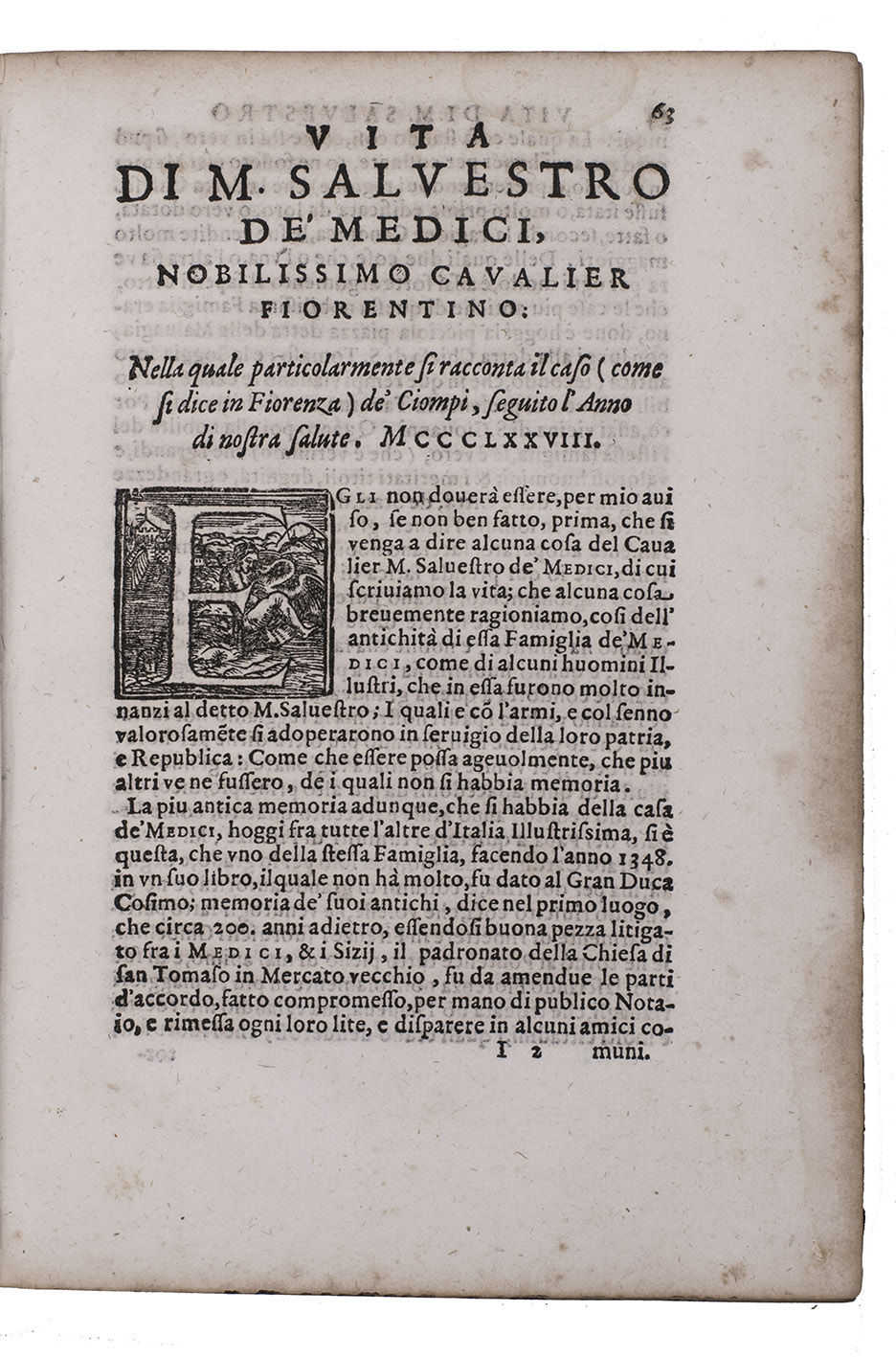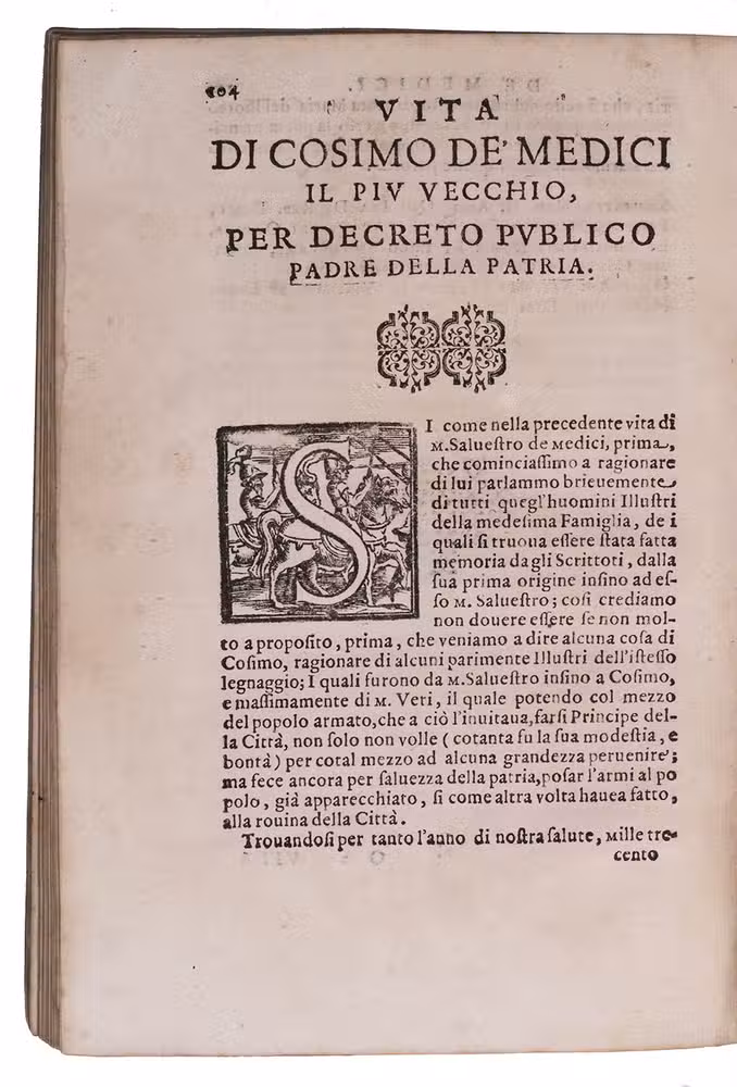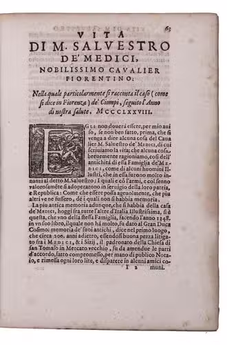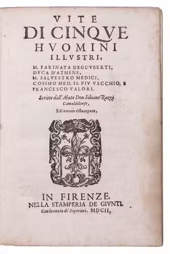 Biographies of five "illustrious men", all known primarily for their positions of power in Florentine politics, in the original Italian, by Silvano Razzi (1527-1611). Valori was added for the first time in the present second edition. Razzi's selection is interesting for including people whose power proved short-lived or who worked largely behind the scenes: all five changed the course of Florence's history with important long-term consequences, but only Cosimo de' Medici is a household name.