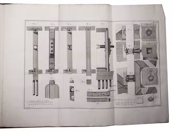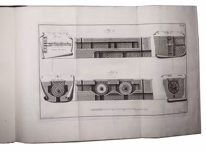Two rare first editions, in the original Dutch, containing detailed descriptions and illustrations of two new inventions in hydraulic engineering: a sluice with sliding gates and a dredging machine. They were designed by the accomplished engineer Cornelis Redelykheid (1728-1788), well-known in his time, but often overlooked in modern literature. The descriptions are accompanied by a total of 9 detailed large folding plates. The dredging machine looks especially ingenious.