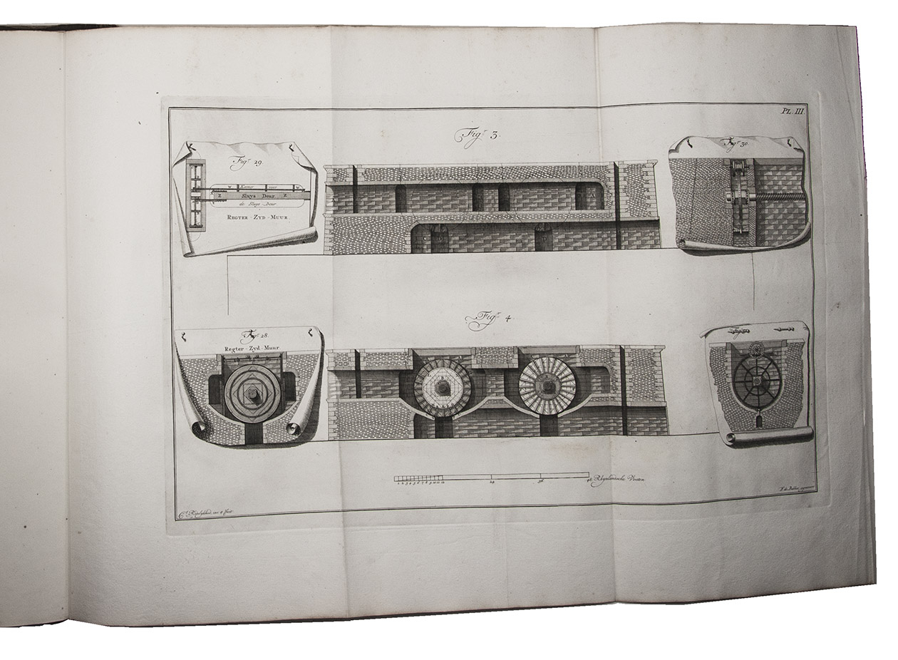 The Hague, Hendrik Christoffel Gutteling; Amsterdam, Jacob Yntema & Jacob Tieboel; for the author, 1774. 2 works in 1 volume. Large folio (49.5 x 31 cm). Ad 1 with 6 large folding engraved plates and ad 2 with 3 large folding engraved plates. Contemporary half calf. XII, 26; XI, [1], 18 pp.